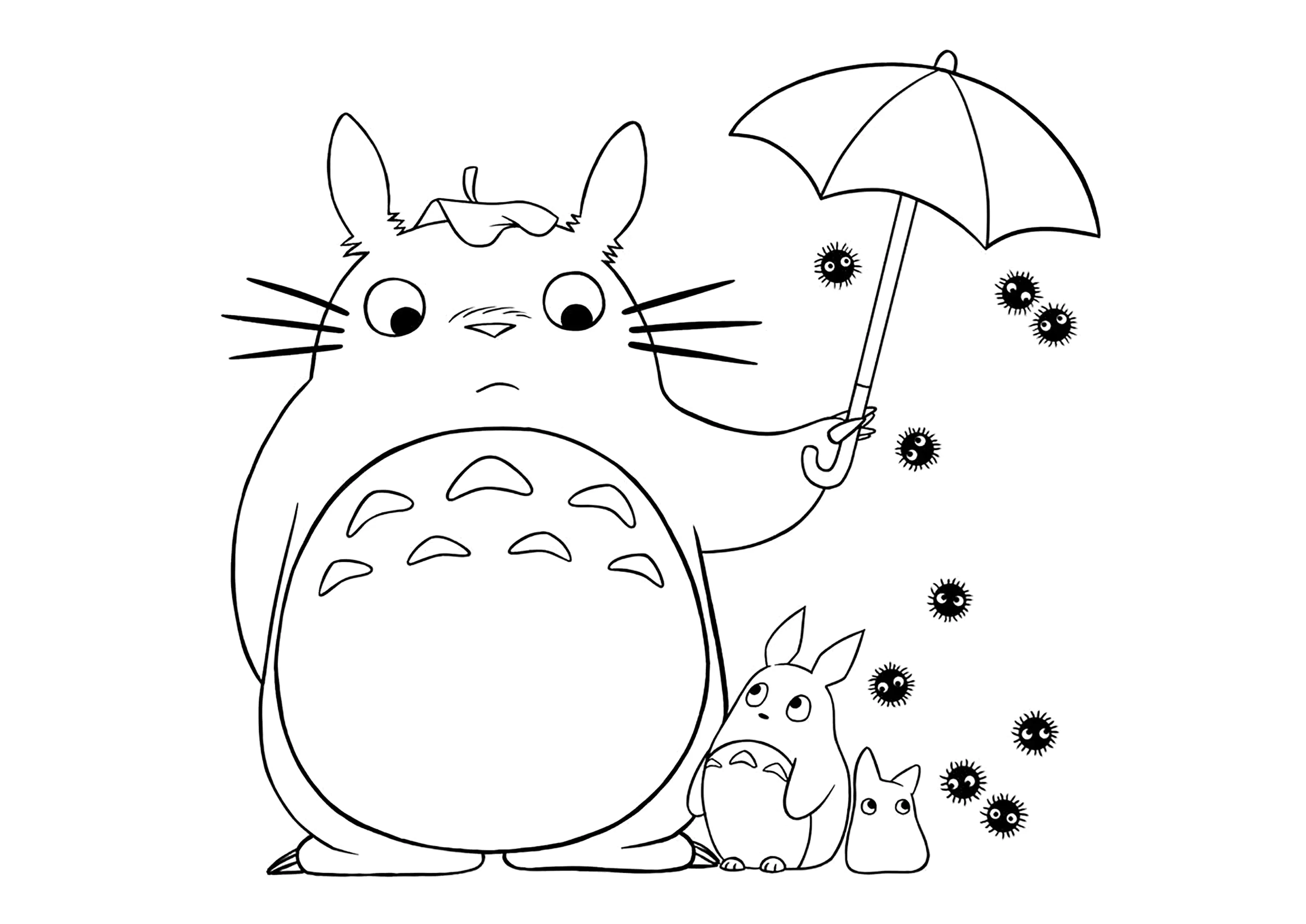 Colorazione di Totoro con linee sottili (Pagina Studio Ghibli da Colorare)