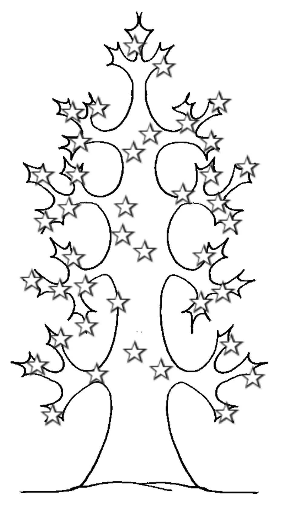 Un albero di Natale con delle stelle. (Pagina Alberi da Colorare)