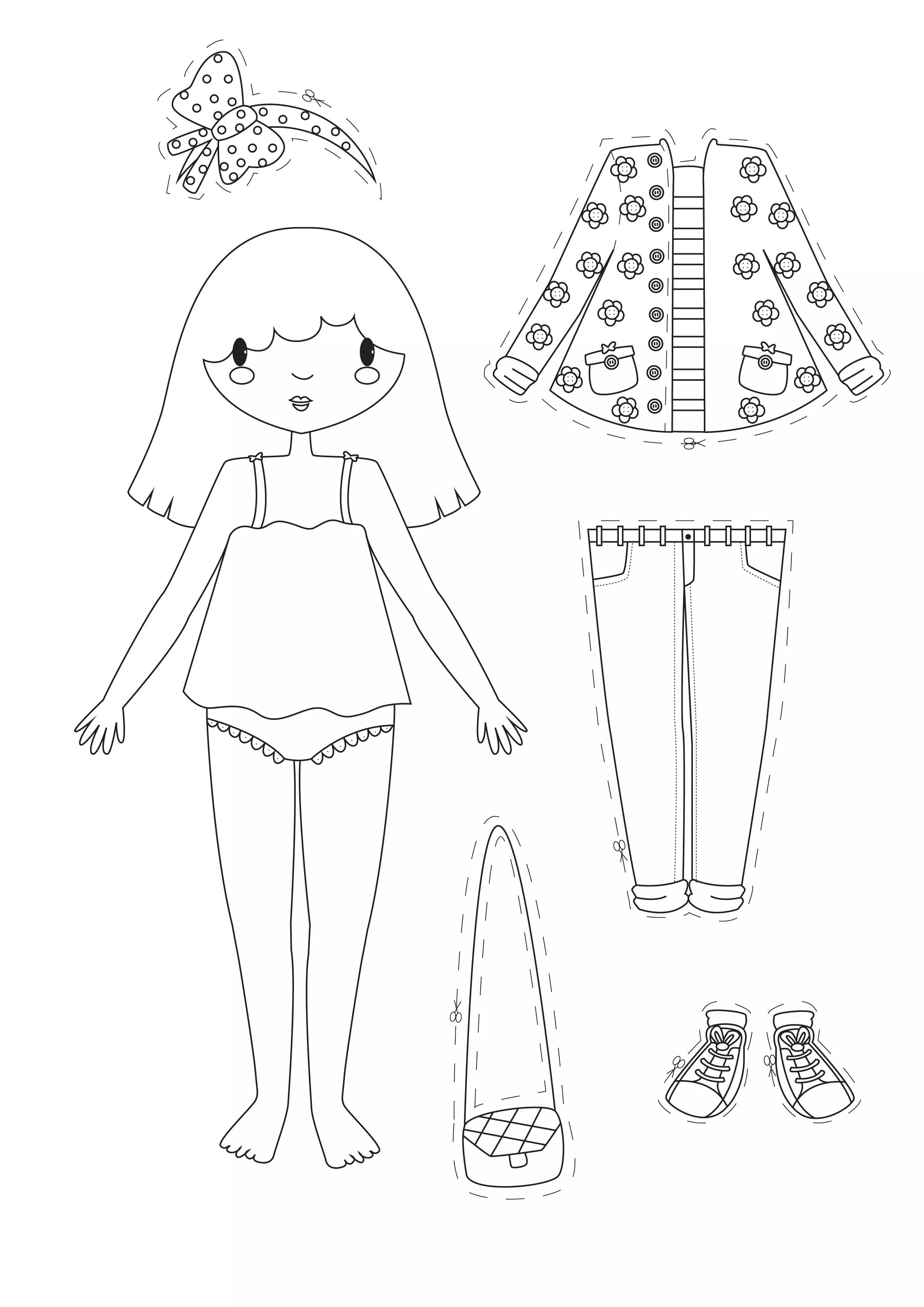 Stile delle Bambole di Carta casual (Pagina da Colorare)