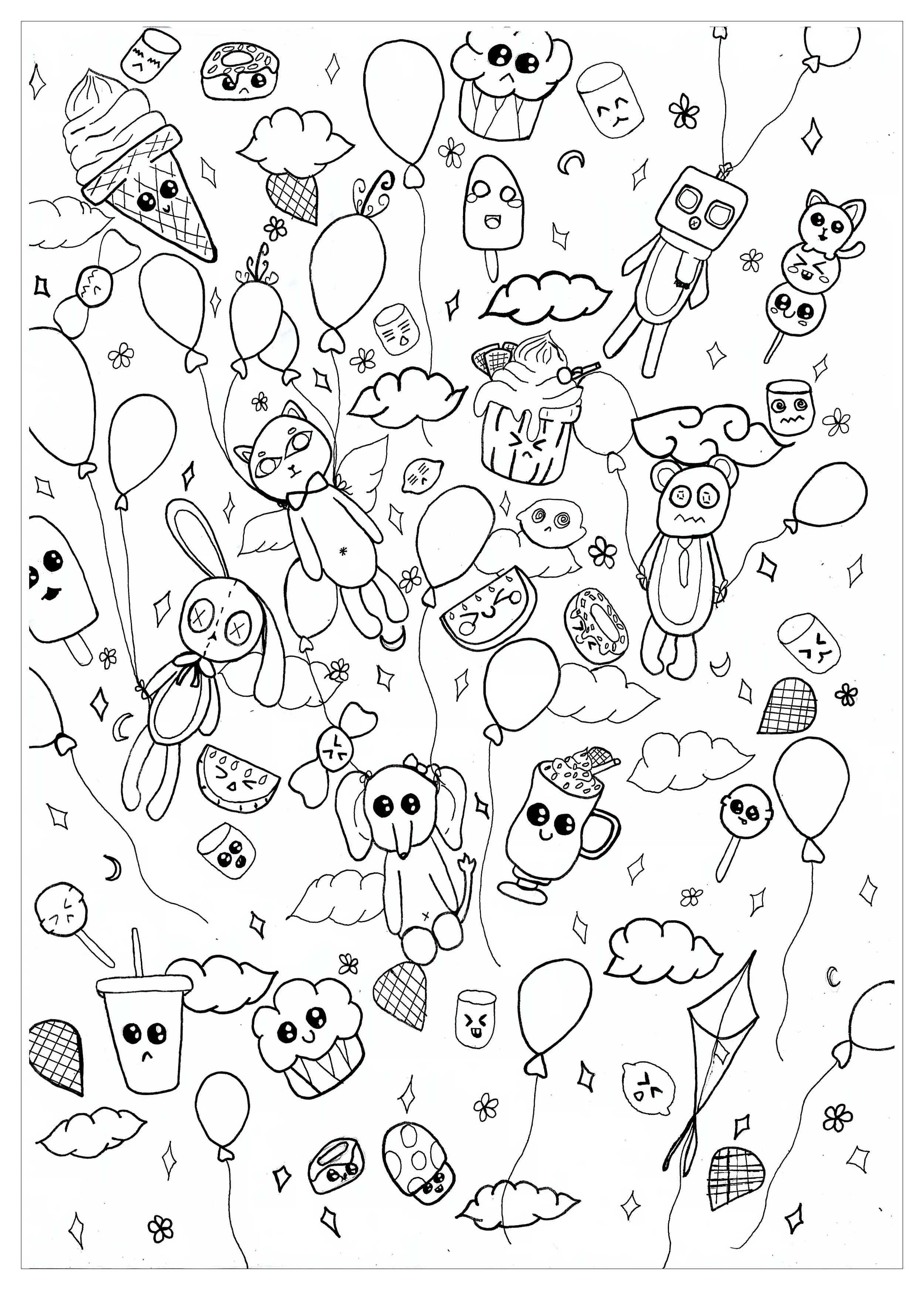 Pagina da colorare per bambini con Kawaii gratis da stampare