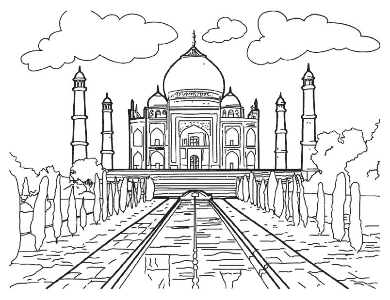 Immagine di monumento da stampare e colorare: Taj Mahal.