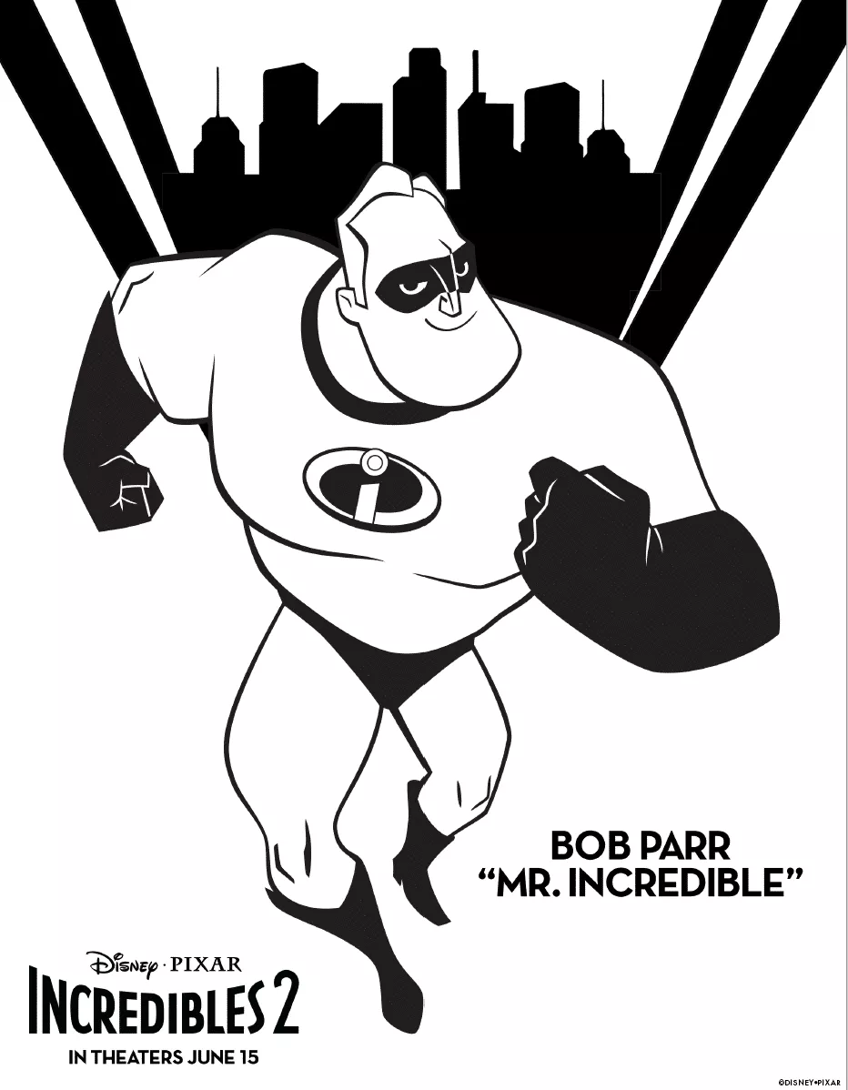Scoprite queste pagine da colorare ispirate al film d'animazione Disney / Pixar Gli Incredibili 2! In questo nuovo film, l'incredibile famiglia affronta una nuova missione che comporta un cambio di ruoli all'interno della famiglia: Bob Parr (Mr Incredible) deve gestire la casa mentre sua moglie Helen (Elastigirl) si precipita in soccorso per salvare il mondo. Il bambino più piccolo scopre anche i suoi poteri, che sono senza dubbio i più straordinari della famiglia!