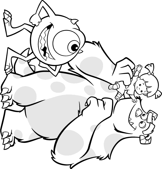 Bob, Sully e Boo riuniti. (Pagina Monsters & Co. da Colorare)