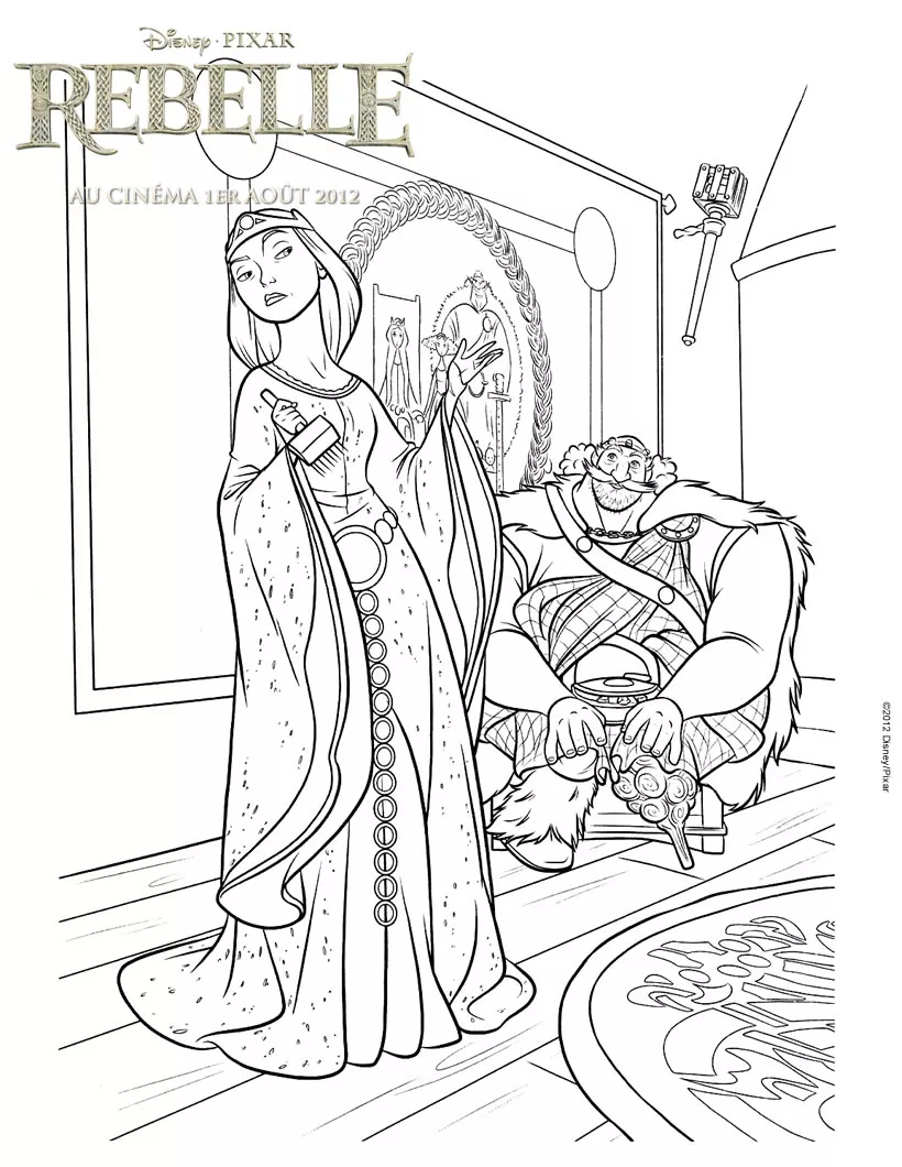 I genitori di Merida: il Re e la Regina (Pagina Rebelle da Colorare)