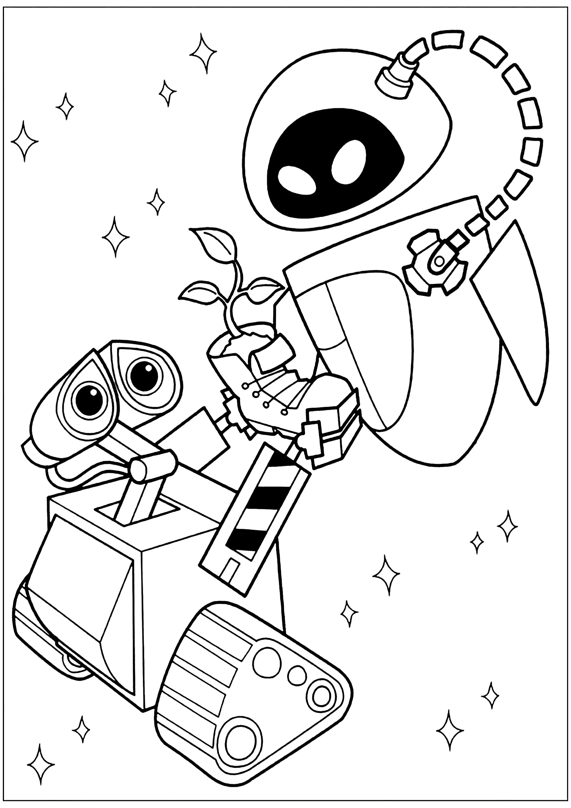Wall-E offre un pianta a EVE. (Pagina da Colorare)