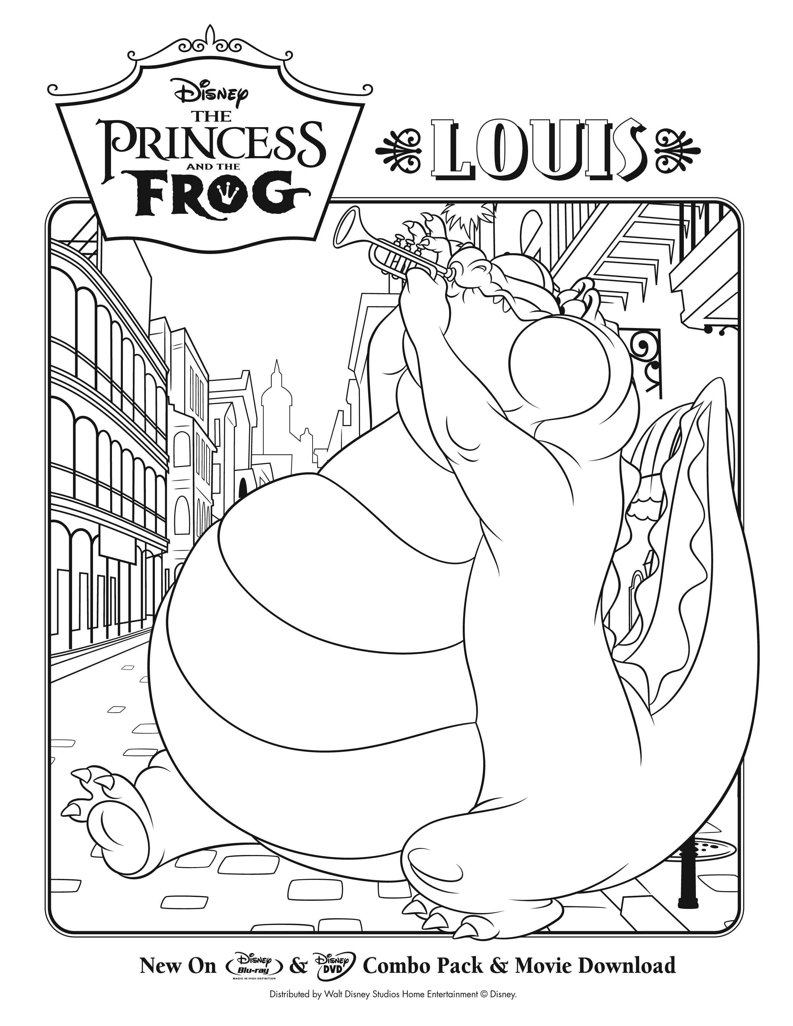 Louis l'alligatore che suona la tromba (Pagina La Principessa e il Ranocchio da Colorare)