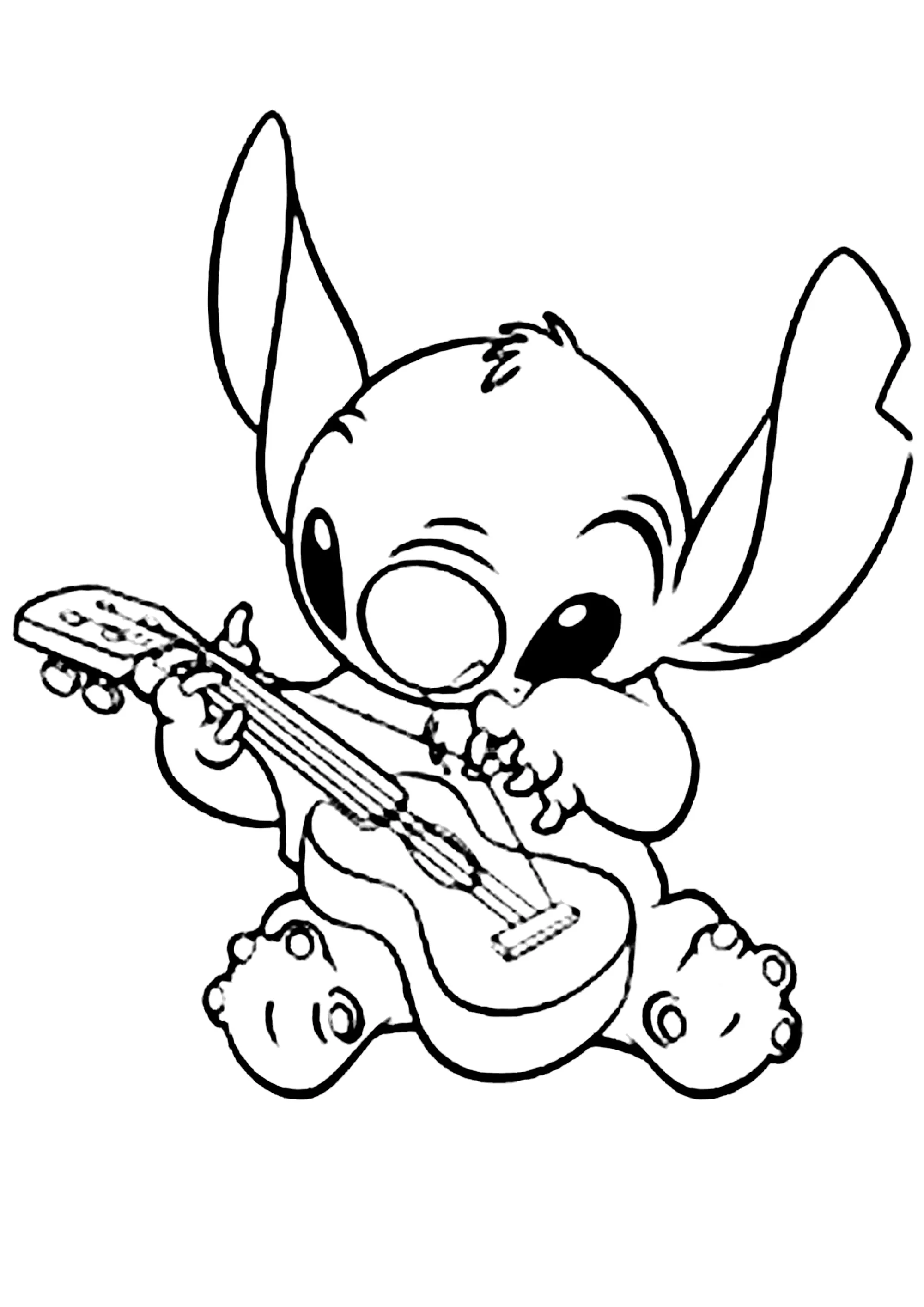 Stitch suona la chitarra. (Pagina Lilo e Stitch da Colorare)