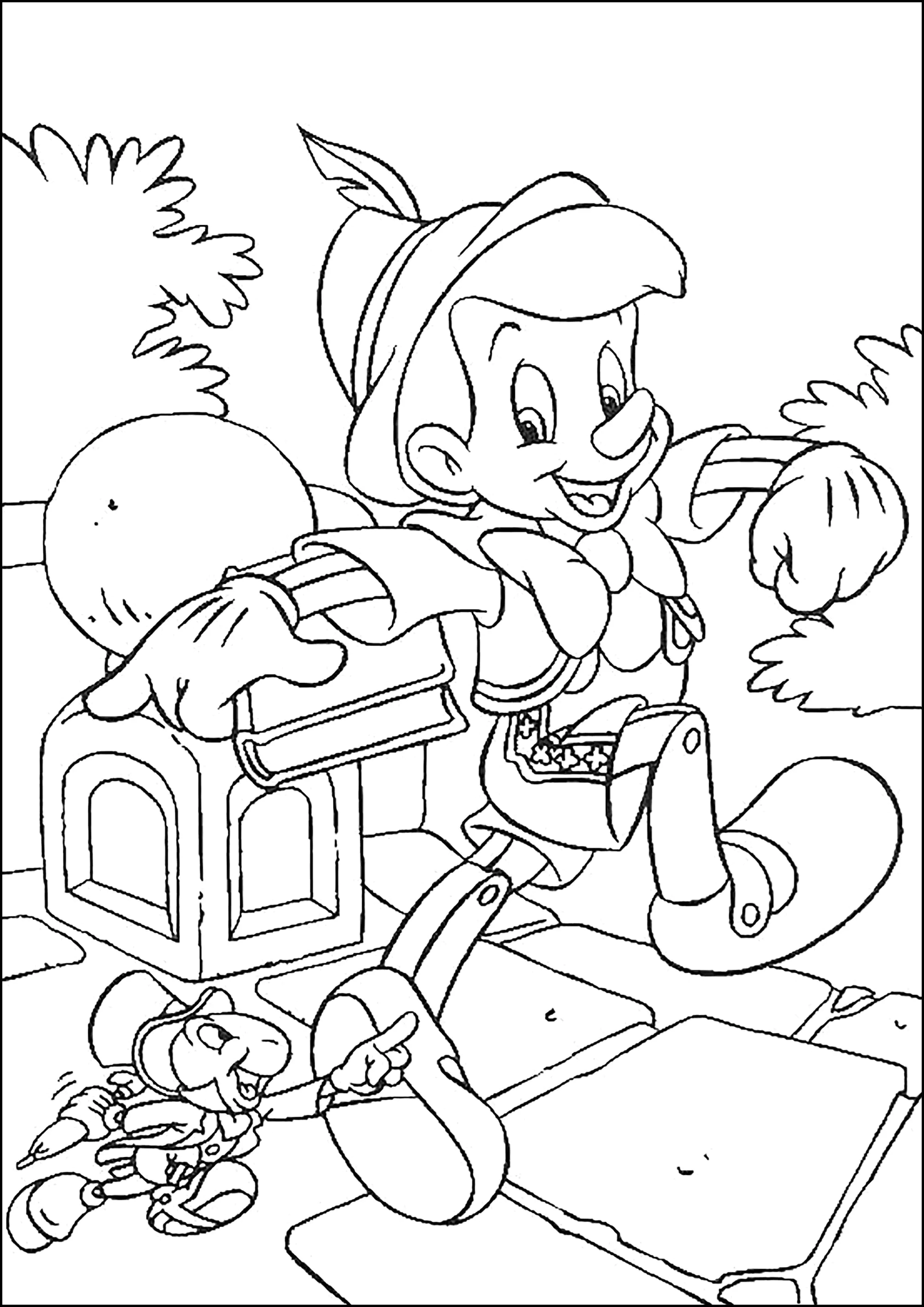 Pinocchio è pronto per l'avventura. (Pagina da Colorare)