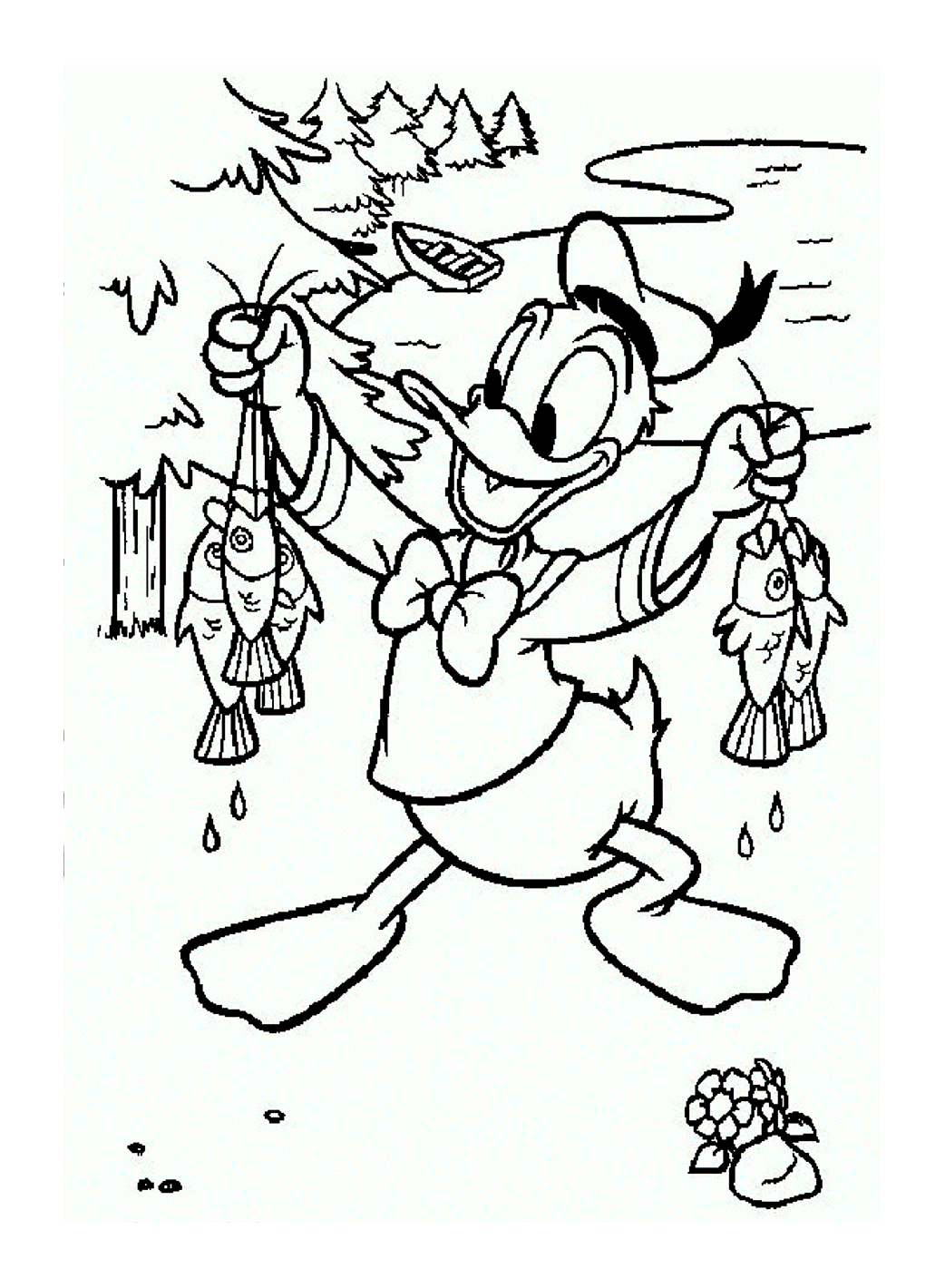 Donald: la pesca è stata buona. (Pagina Paperino da Colorare)