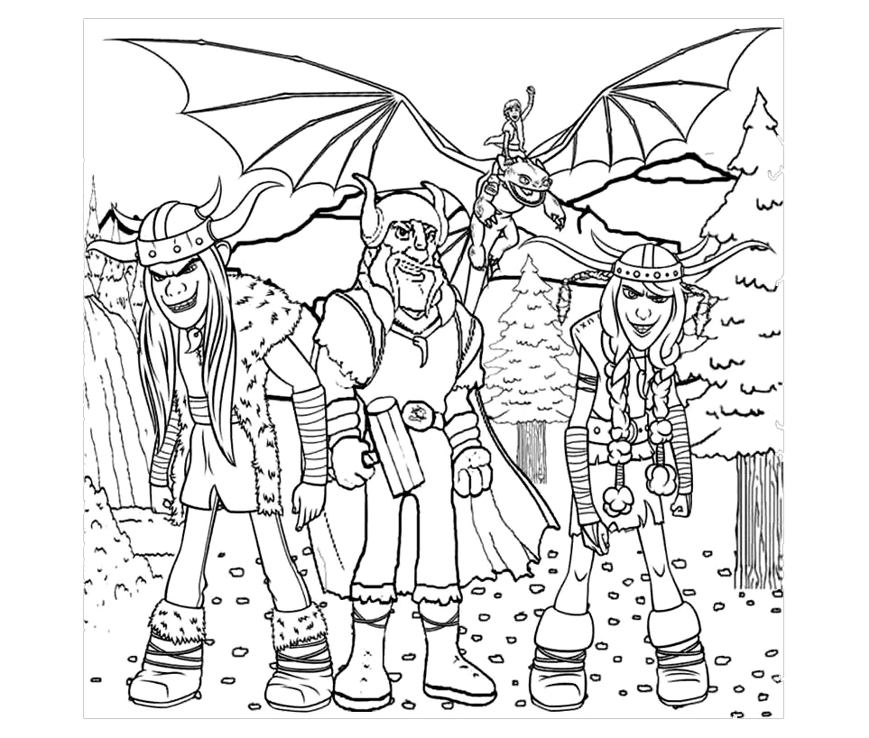 Disegno gratuito dei Dragon Trainer (Dreamworks) da stampare e colorare.