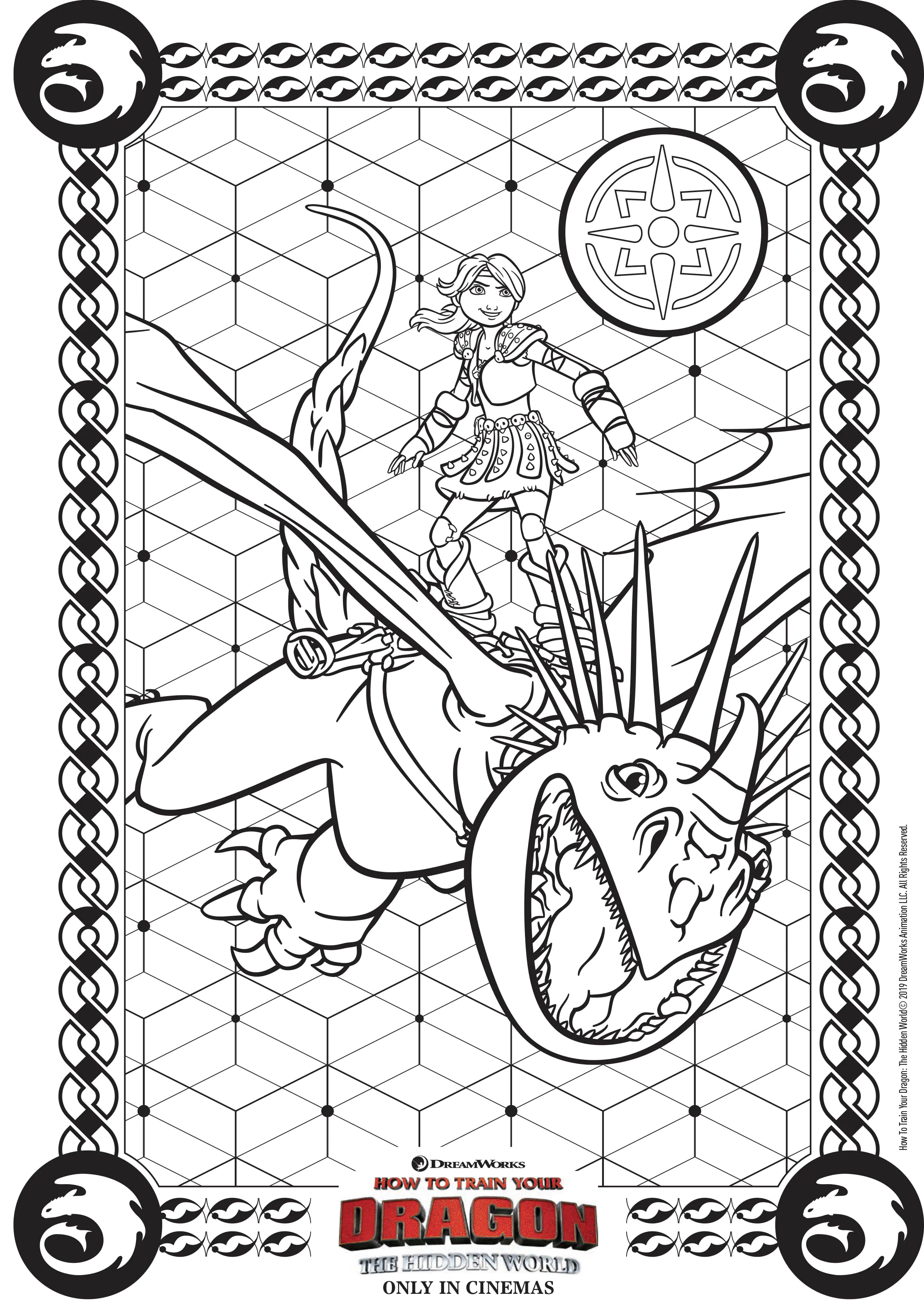 Aiuta Astrid a volare ancora più in alto con alcuni colori! (Pagina Dragons 3 da Colorare)