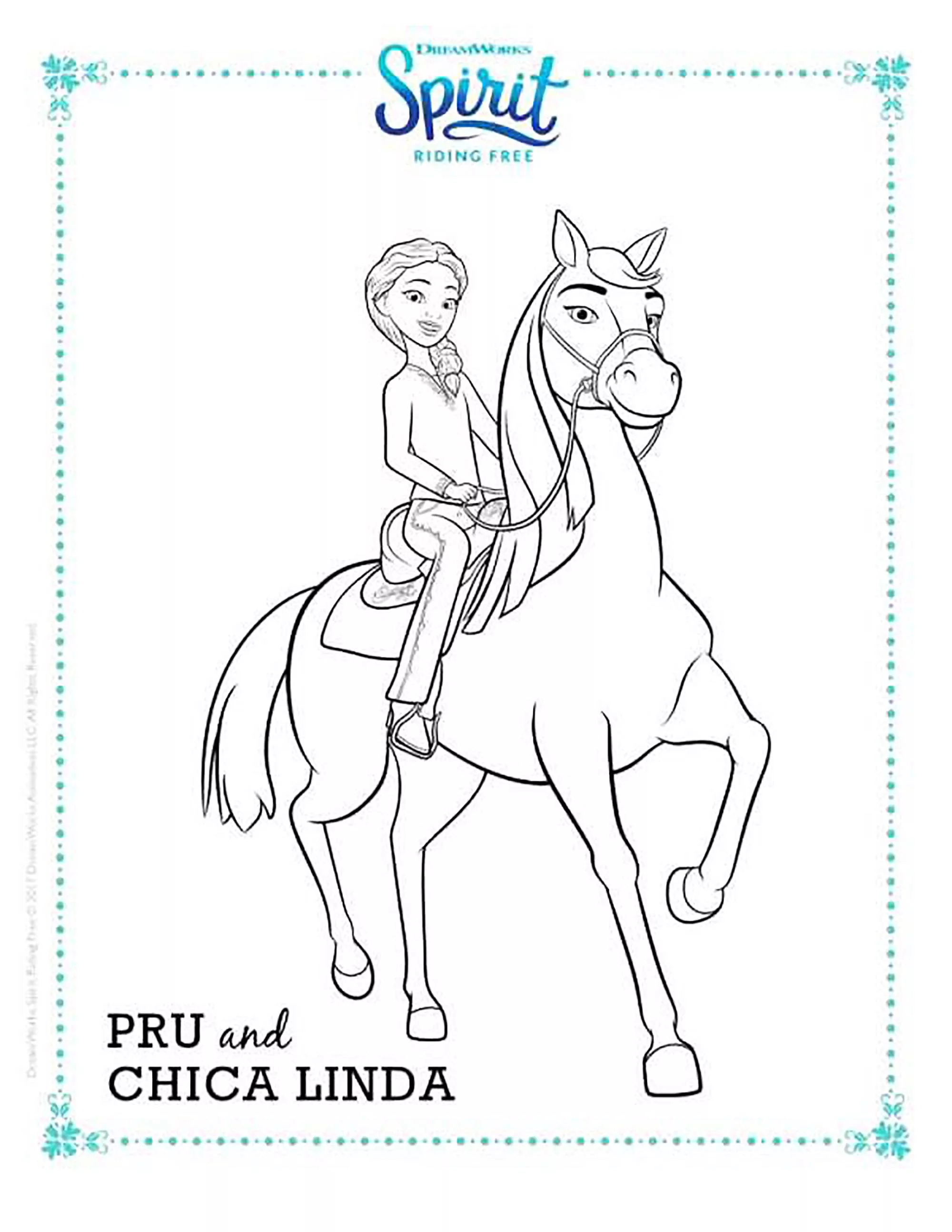 Pru & Chica Linda (Pagina Spirit – Cavallo selvaggio da Colorare)