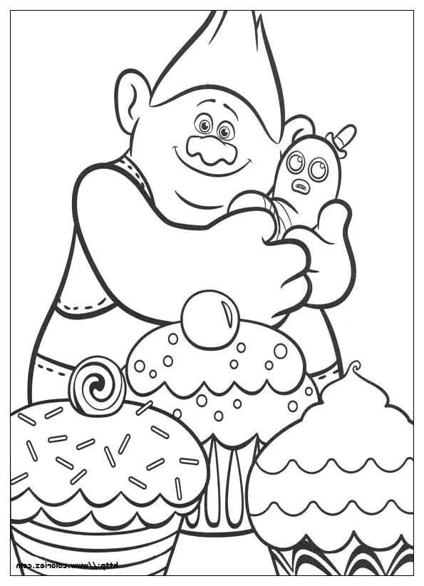 Biggie e i cupcakes (Pagina Trolls da Colorare)