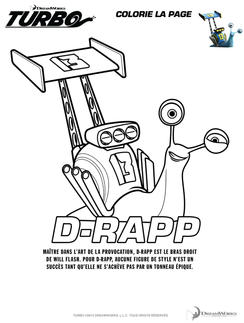 Immagine da stampare e colorare di Turbo, la lumaca più veloce del mondo.