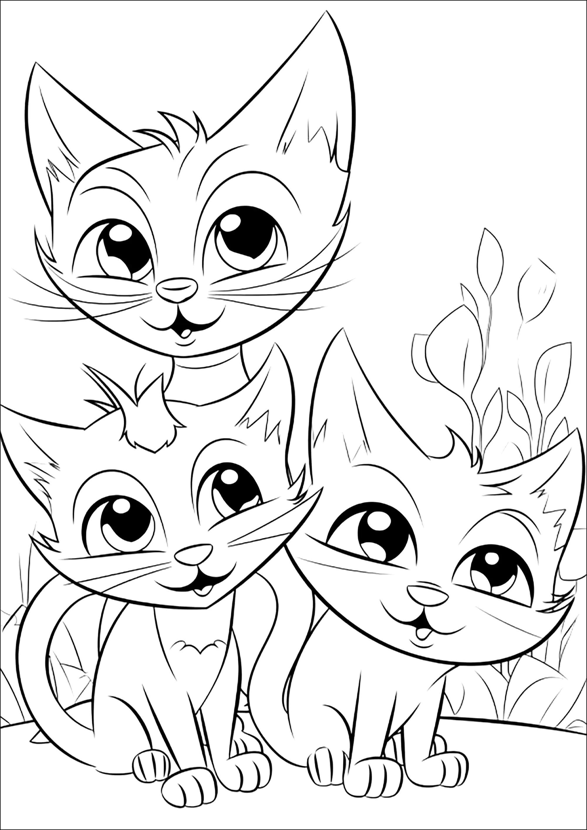 Tre gatti birichini (Pagina da Colorare)