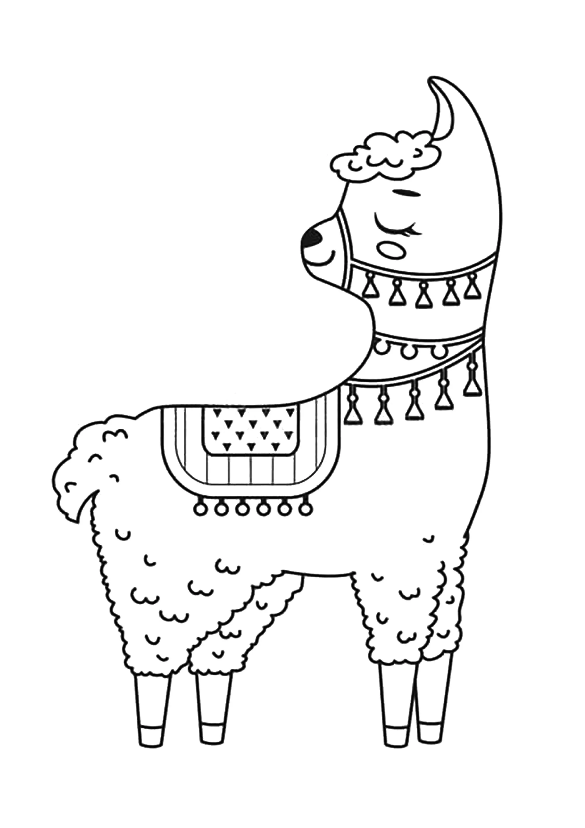 Piccolo lama semplicemente decorato. (Pagina da Colorare)