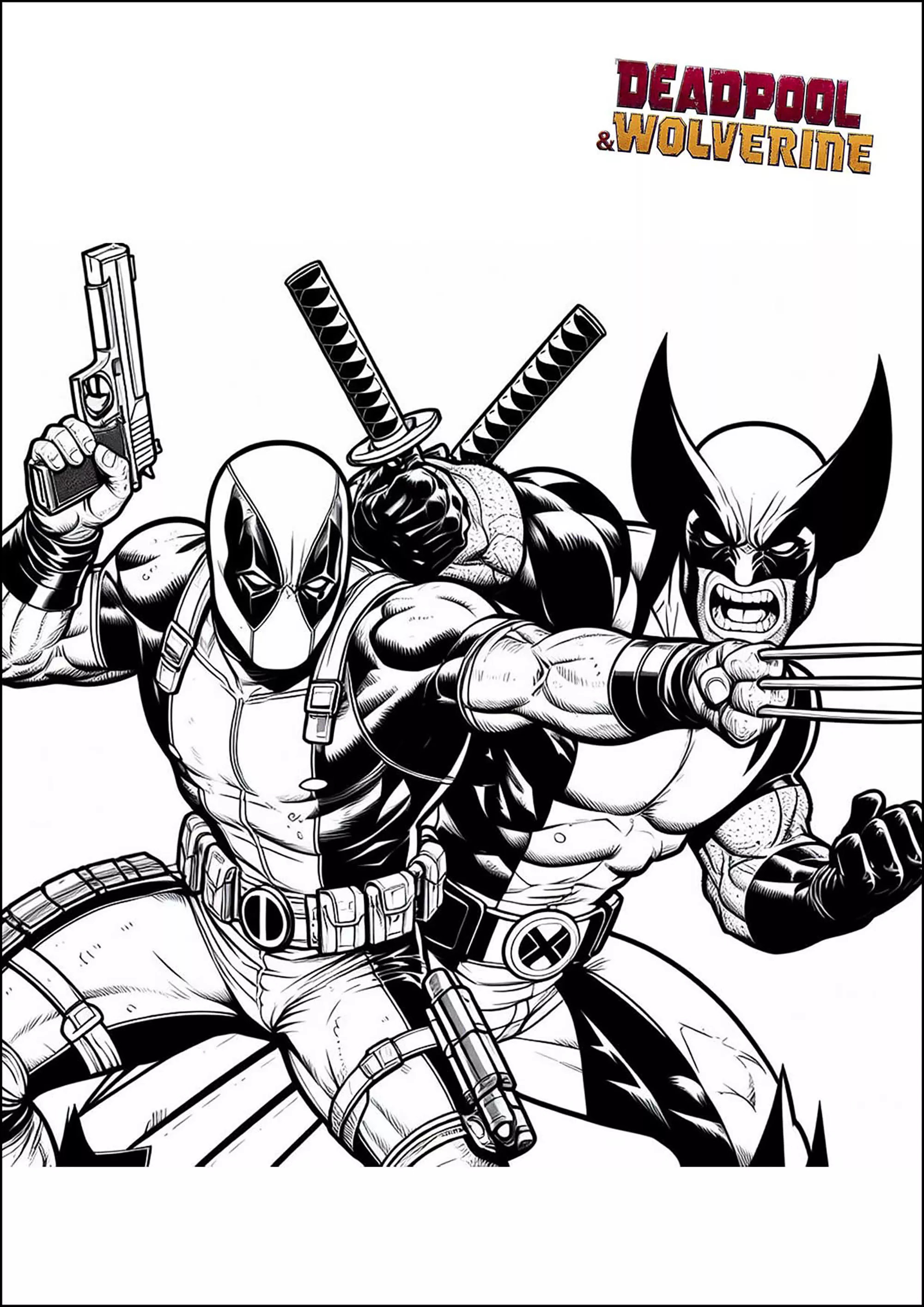 Deadpool e Wolverine: lo stile dei fumetti (Pagina da Colorare)