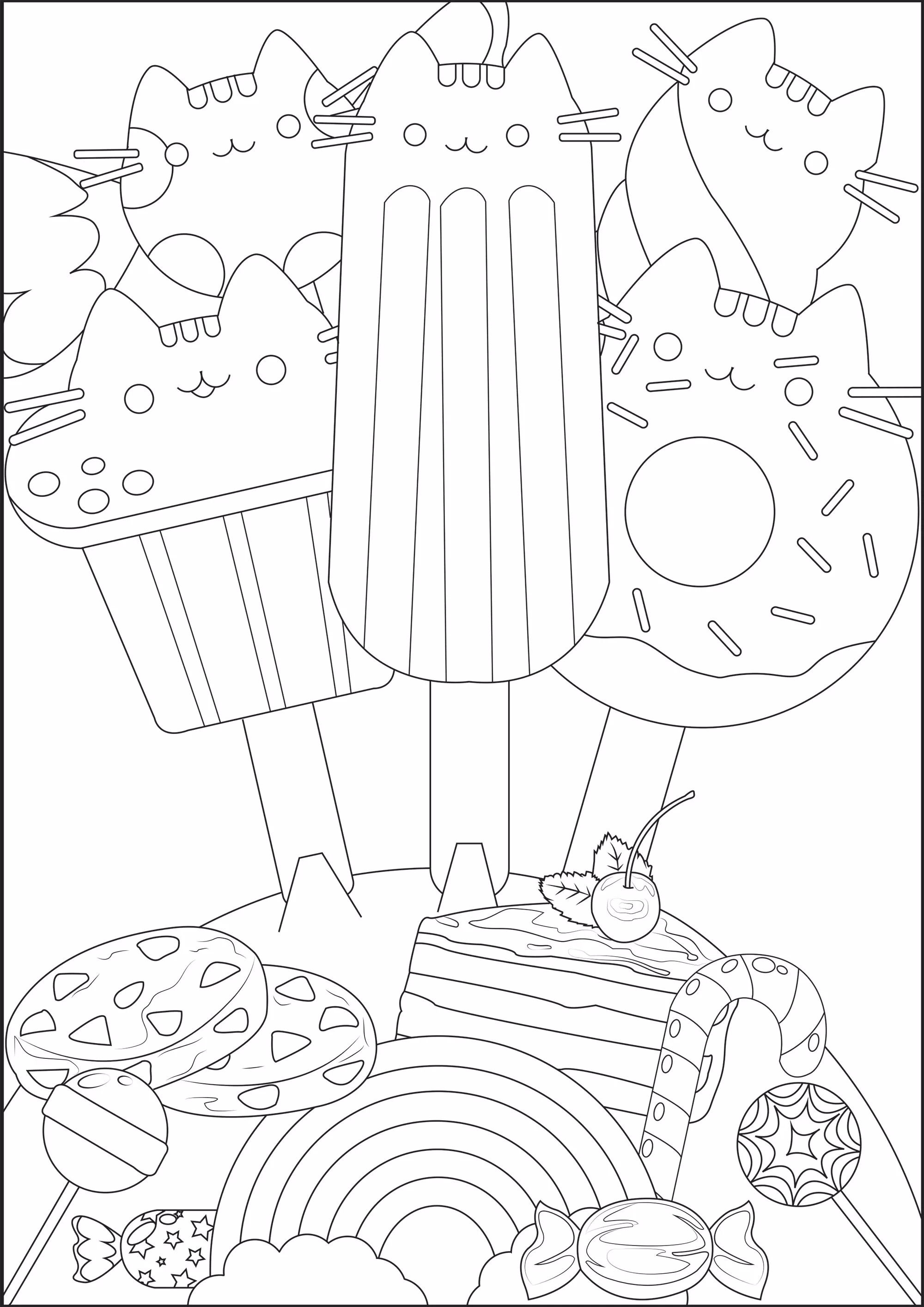 Colorate questi graziosi gelati con le teste di Pusheen, torte e altri dolcetti.
