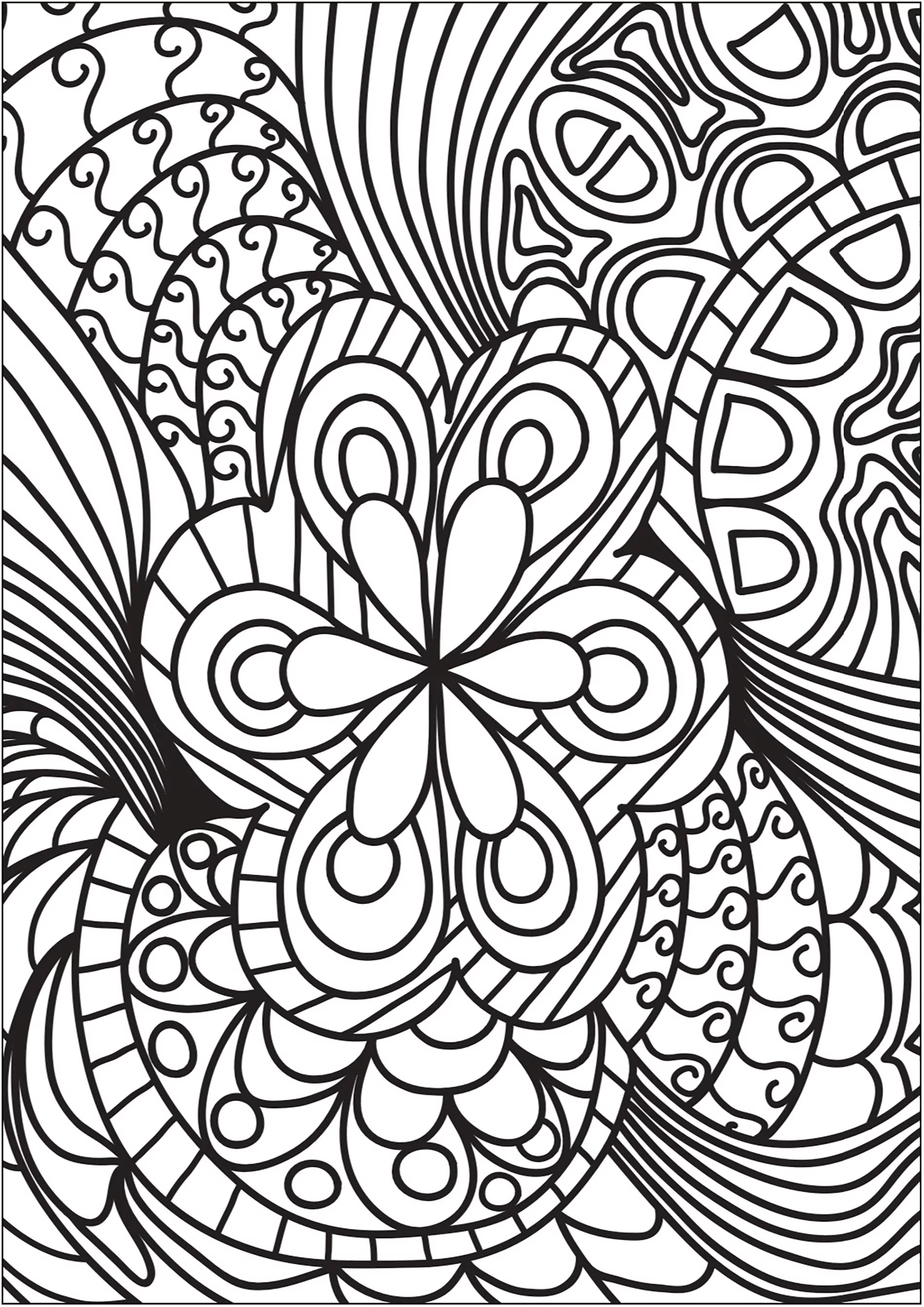 Doodle con un fiore centrale. (Pagina Doodle Art da Colorare)