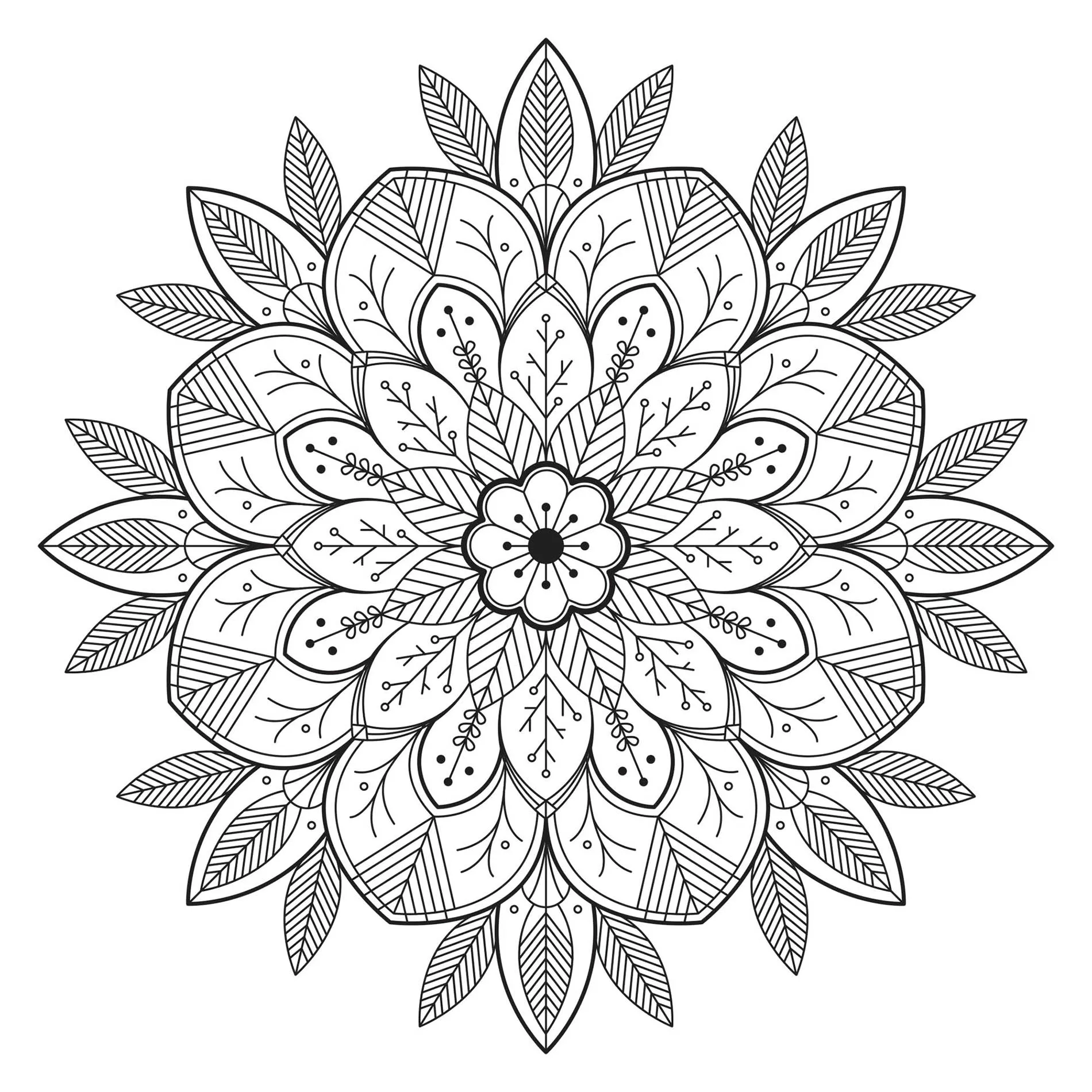 Mandala con foglie e fiori (Pagina da Colorare)