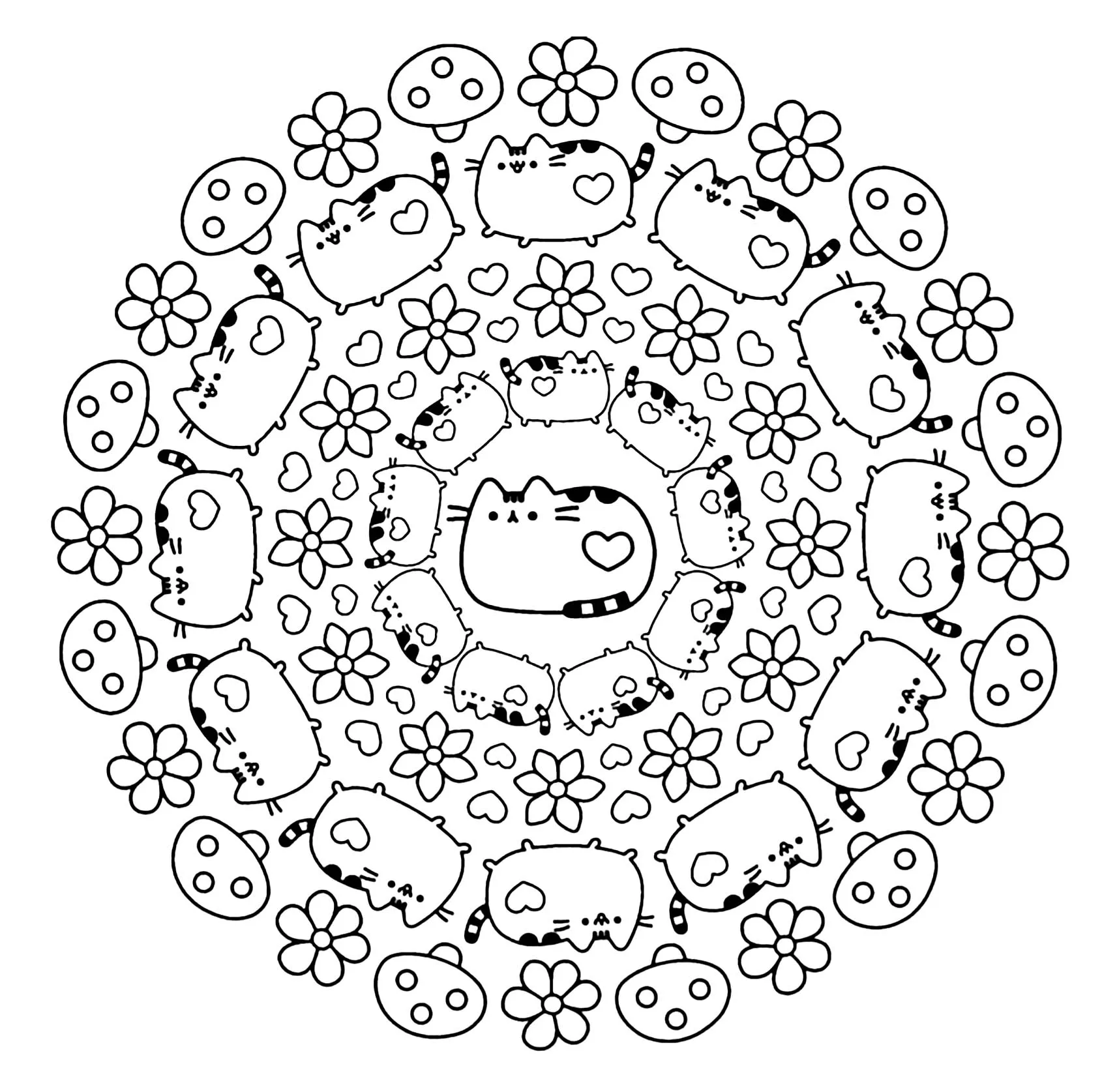 Un mandala con il gatto Pusheen, molto carino e Kawaii!