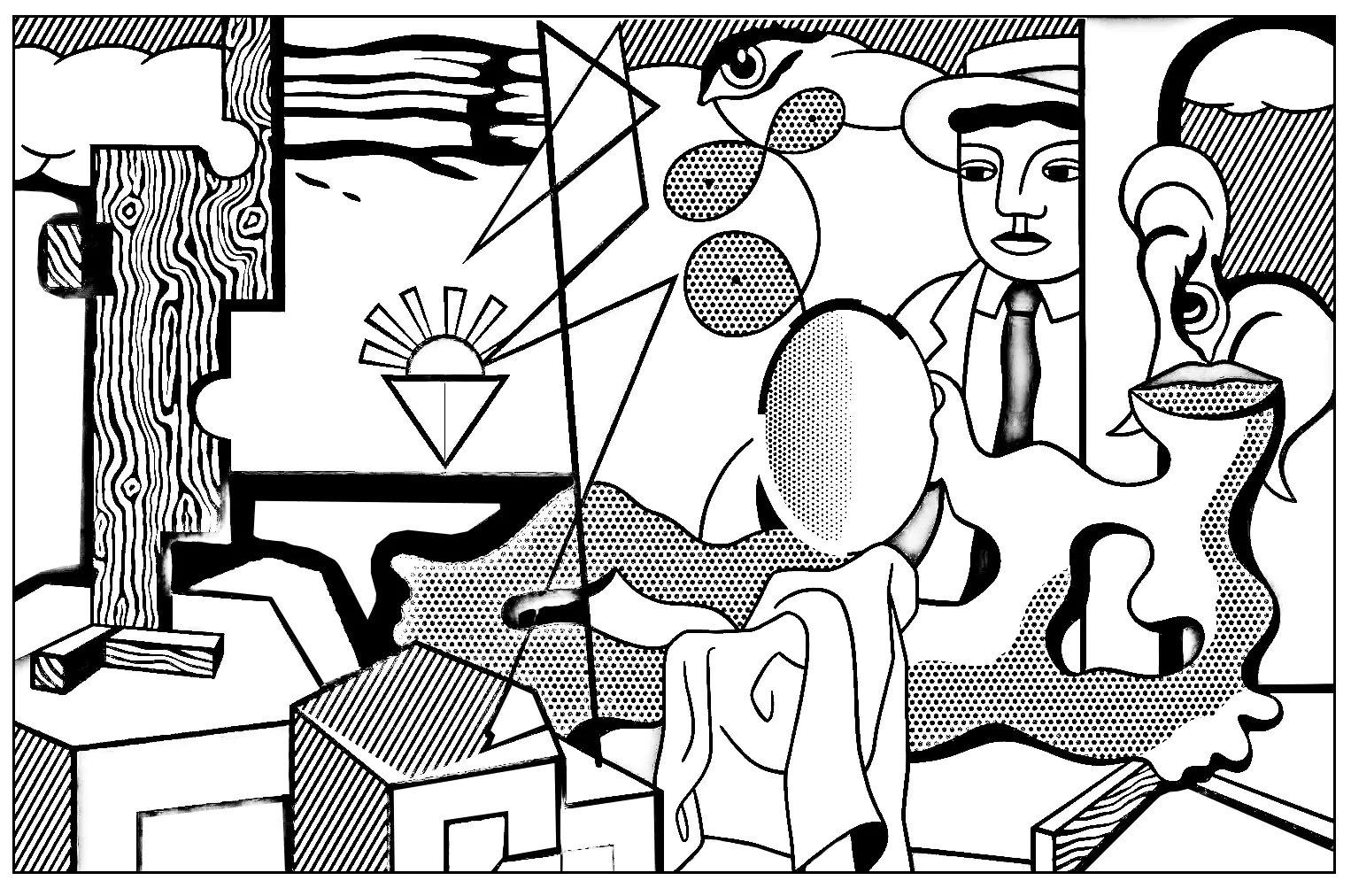 Colorazione ispirata da un'opera di Roy Lichtenstein. (Pagina da Colorare)