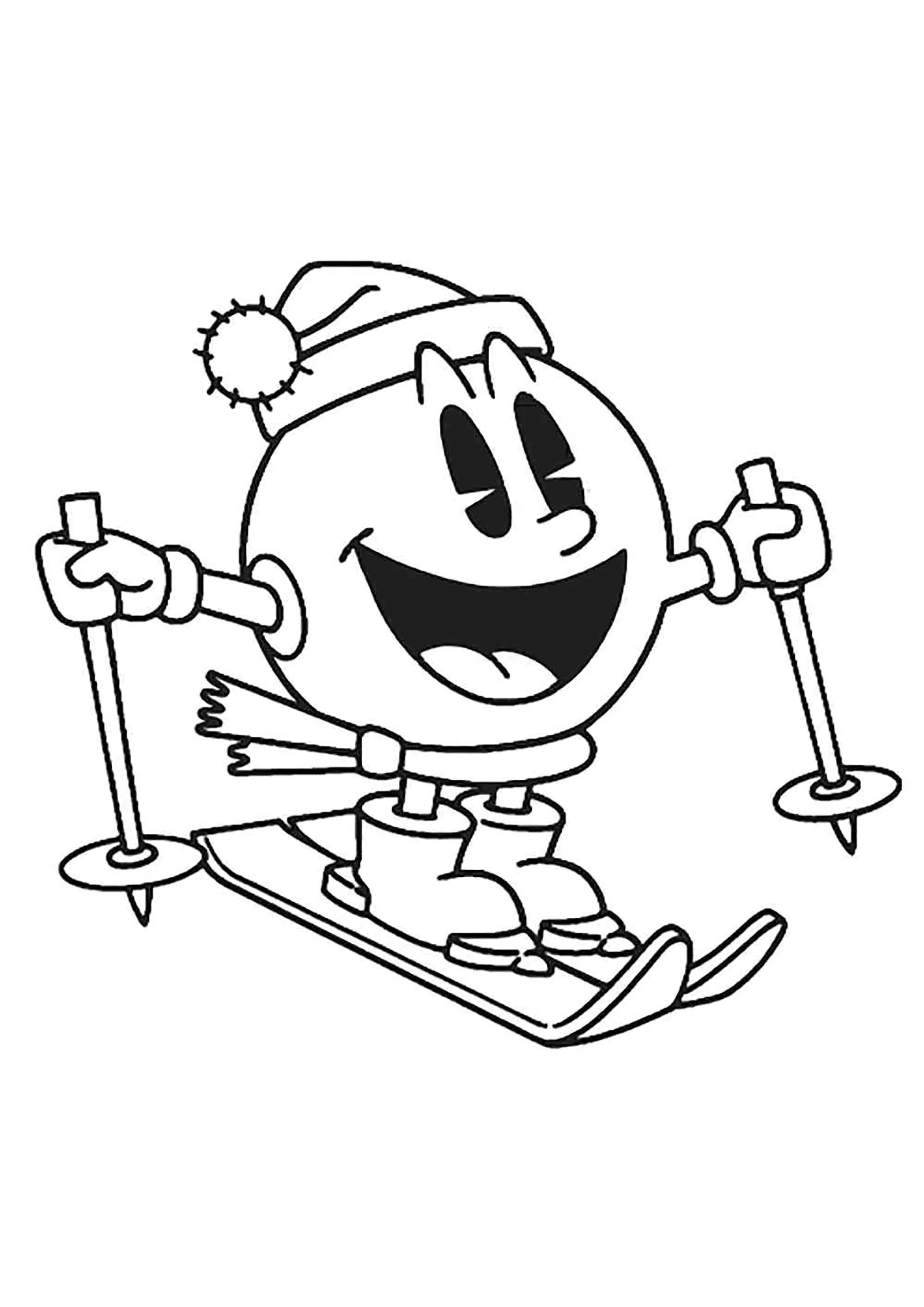 Pac Man fa sci. (Pagina Pac-Man da Colorare)