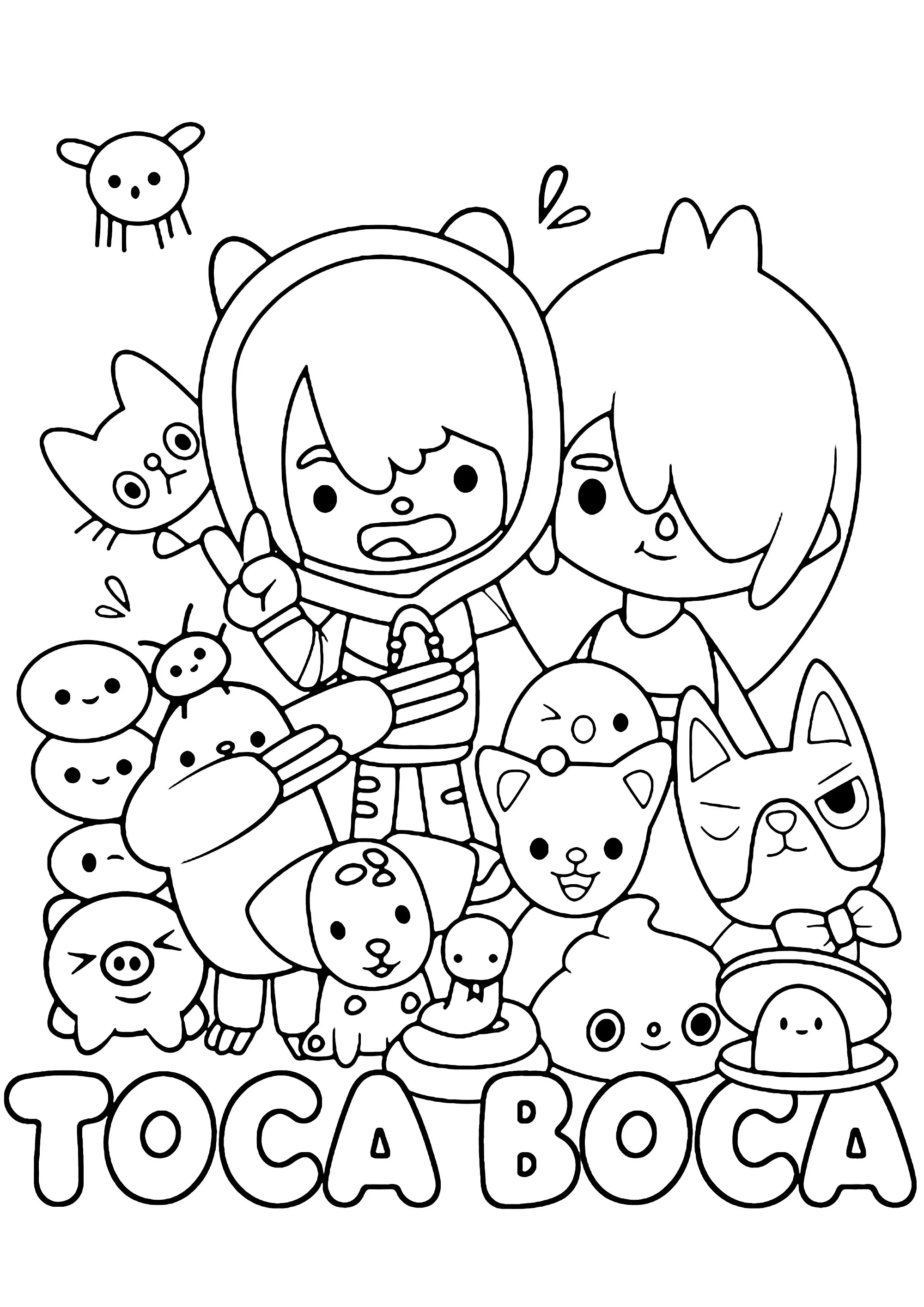 Diversi personaggi divertenti di Toca Boca. (Pagina da Colorare)