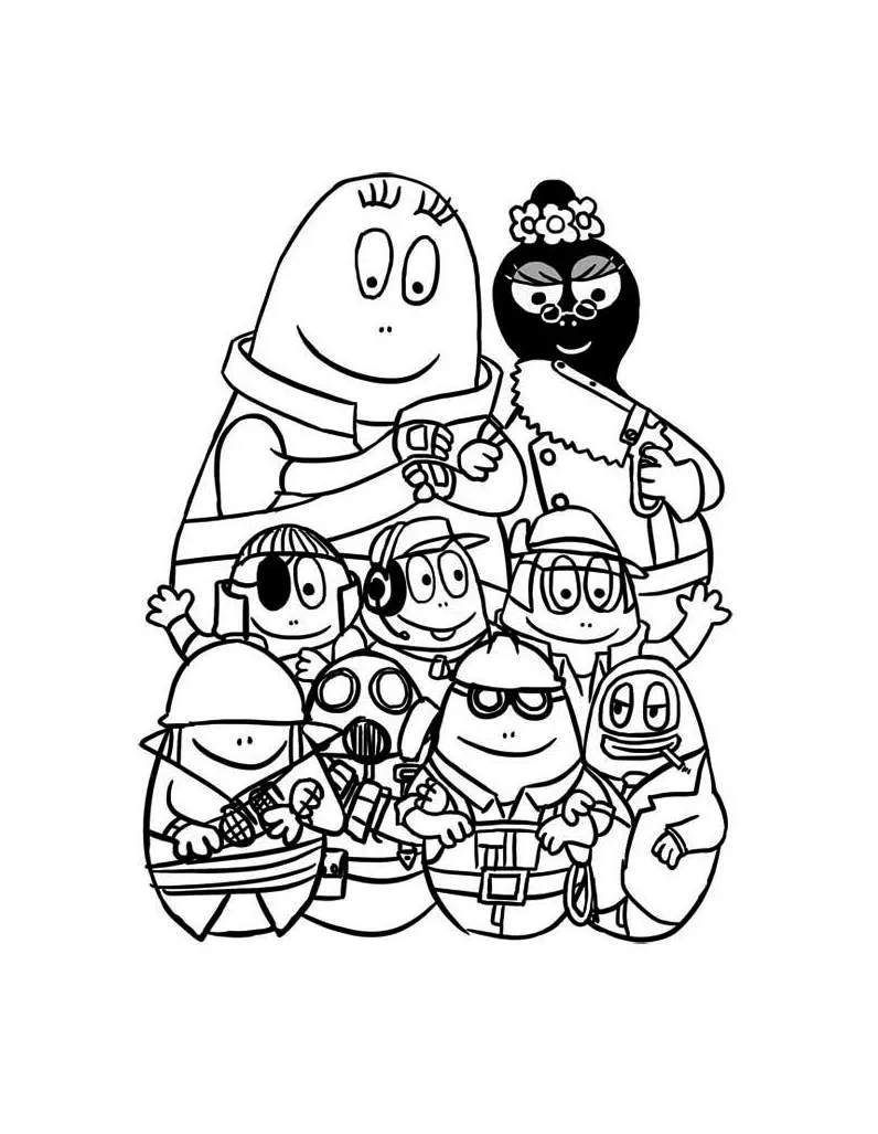 La famiglia Barbapapa va in esplorazione (Pagina da Colorare)