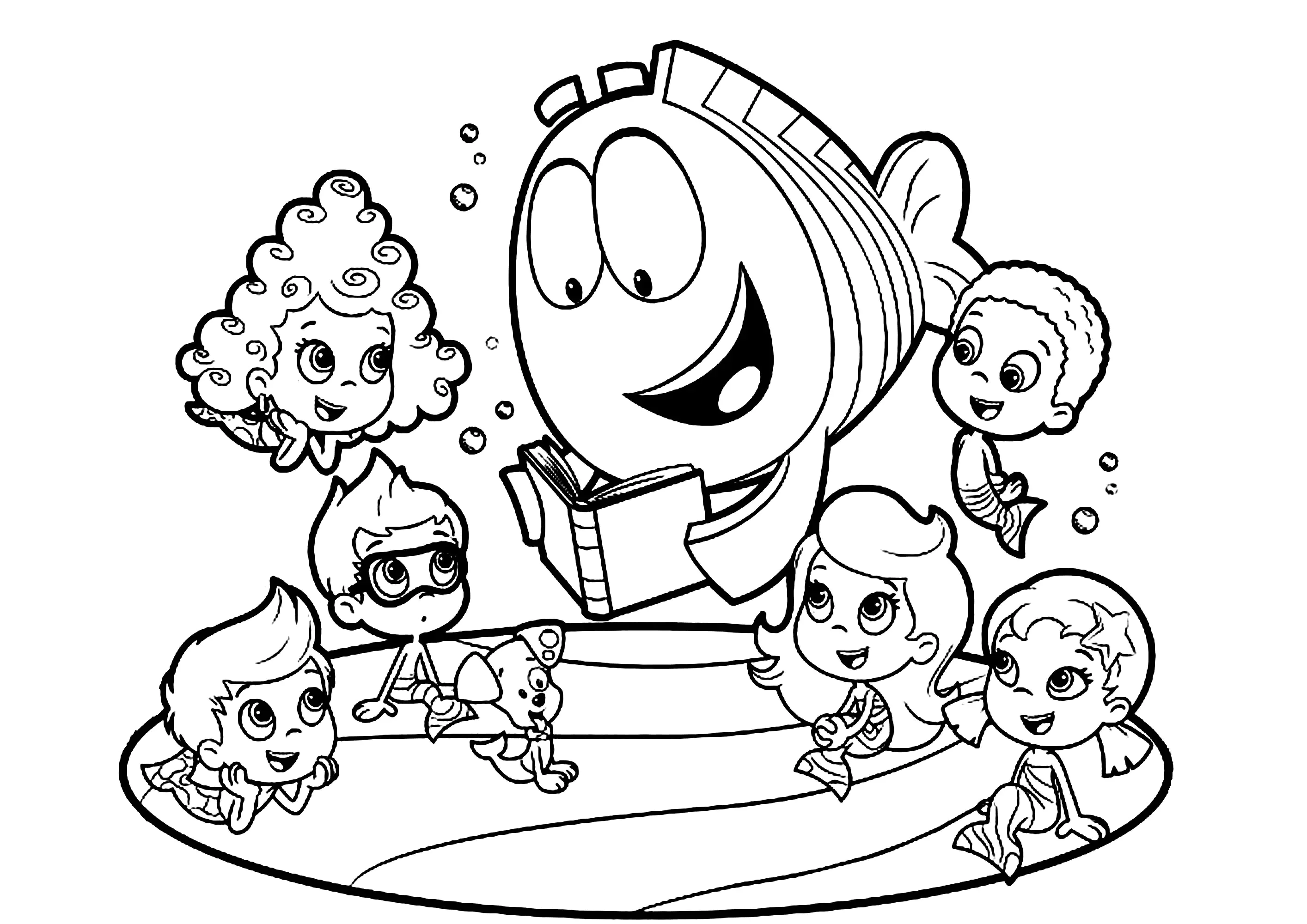 Tutti i personaggi di Bubble Guppies riuniti. (Pagina da Colorare)