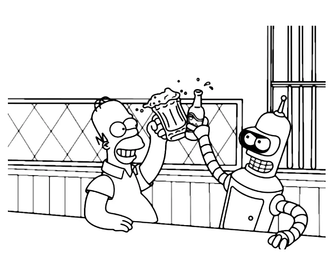 Homer Simpson con il robot di Futurama!