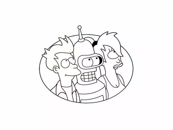 3 eroi di Futurama (Pagina da Colorare)