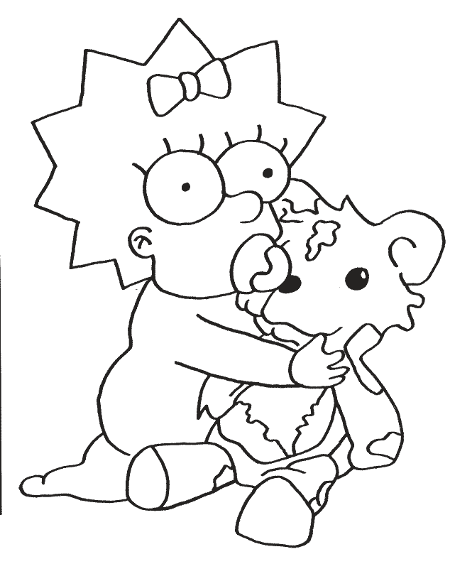 Maggie e il suo peluche (Pagina I Simpson da Colorare)
