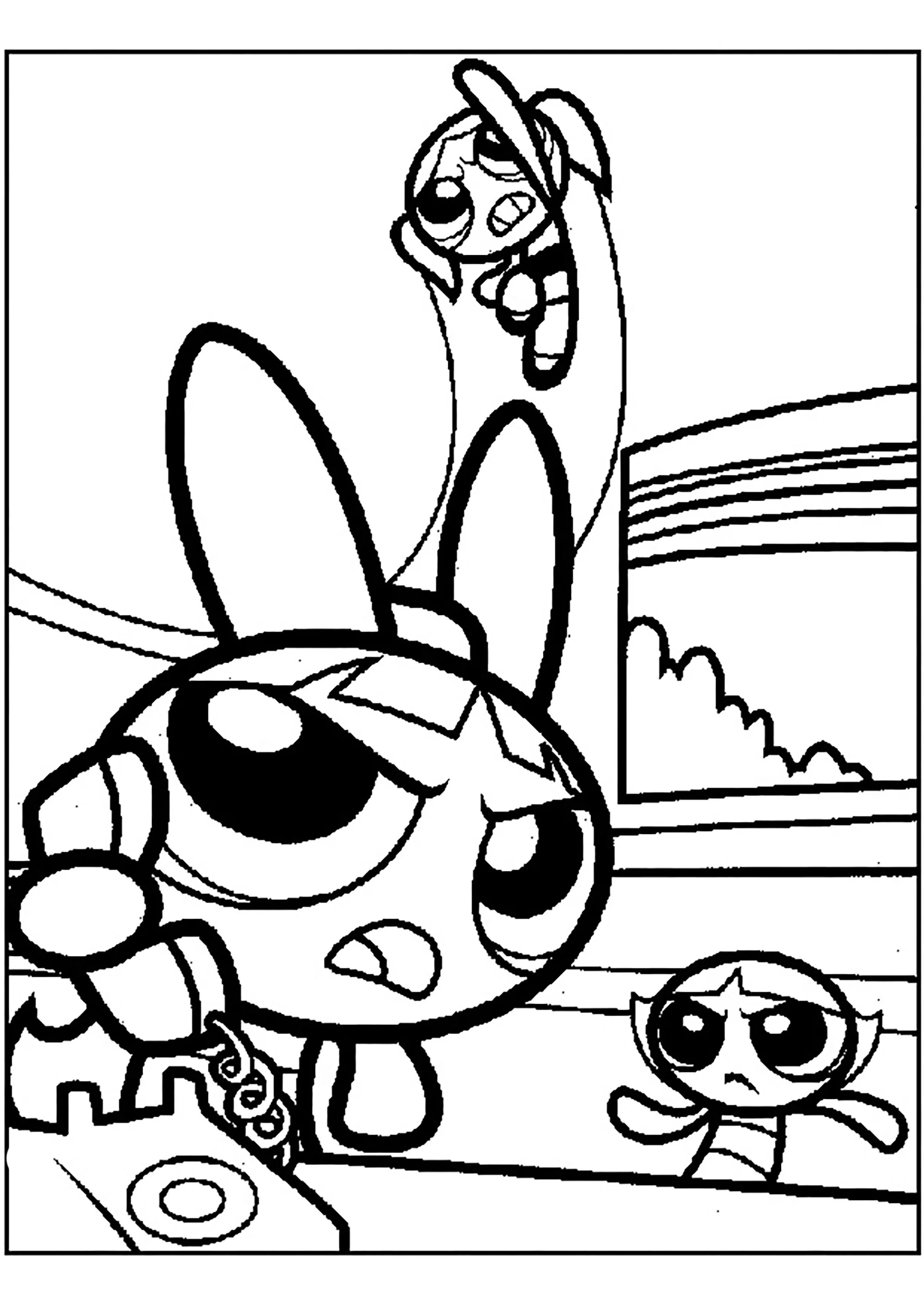 Belle, Bulle e Ribelle sono pronte per la battaglia. (Pagina Le Super Nanas da Colorare)
