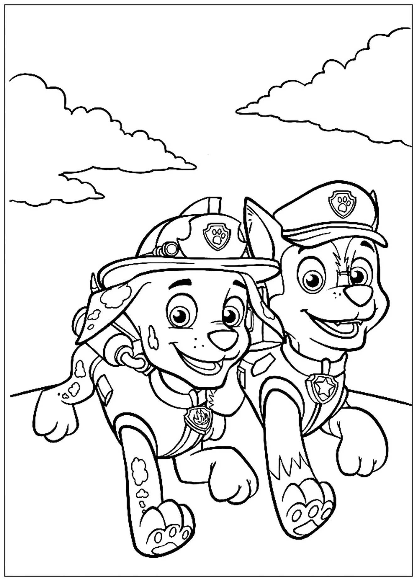 Meraviglioso disegno da colorare di Paw Patrol: Chase e Rocky.