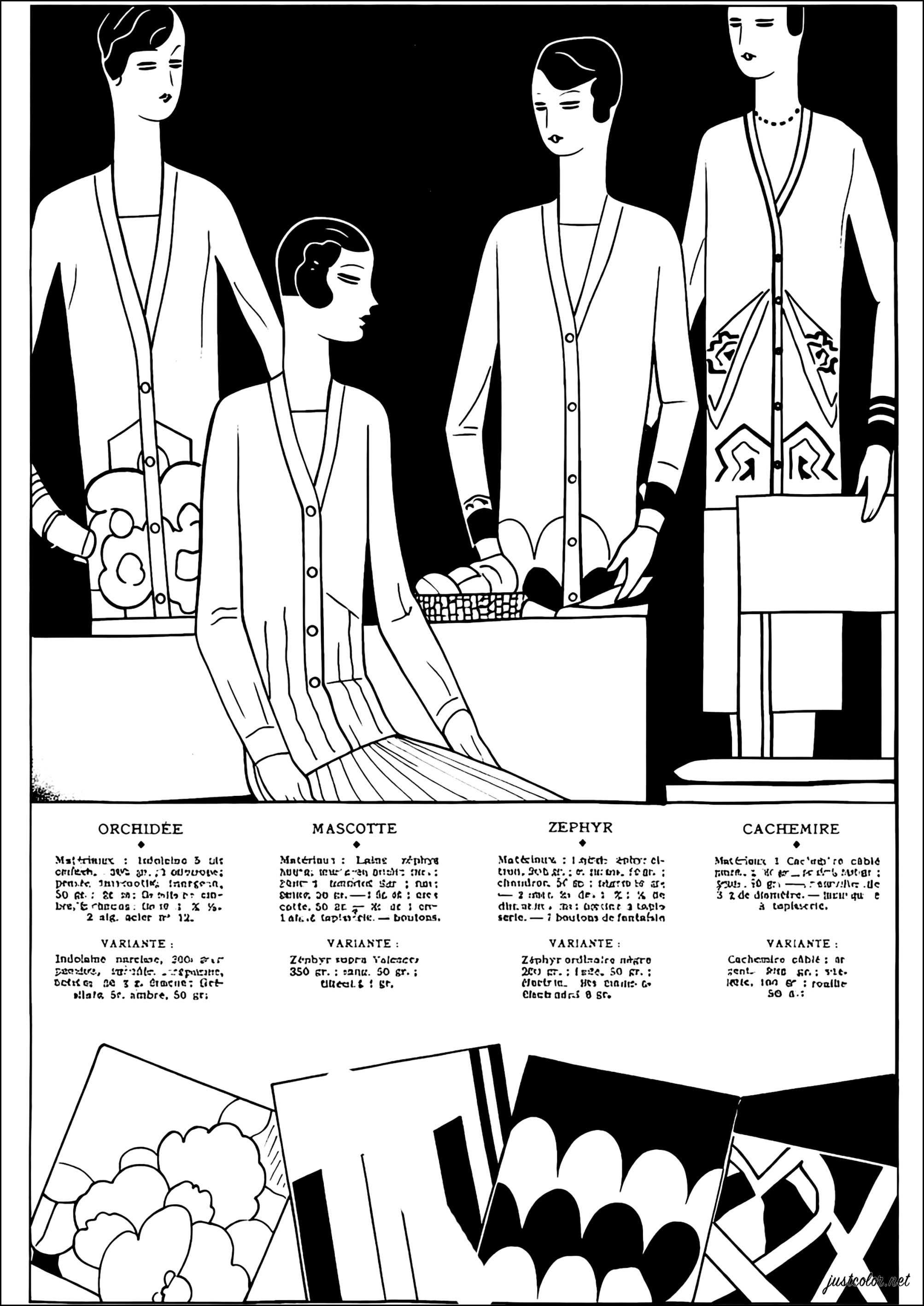 此填色页由杂志《Tricot pour Dames》(1933年)内页创作而成。