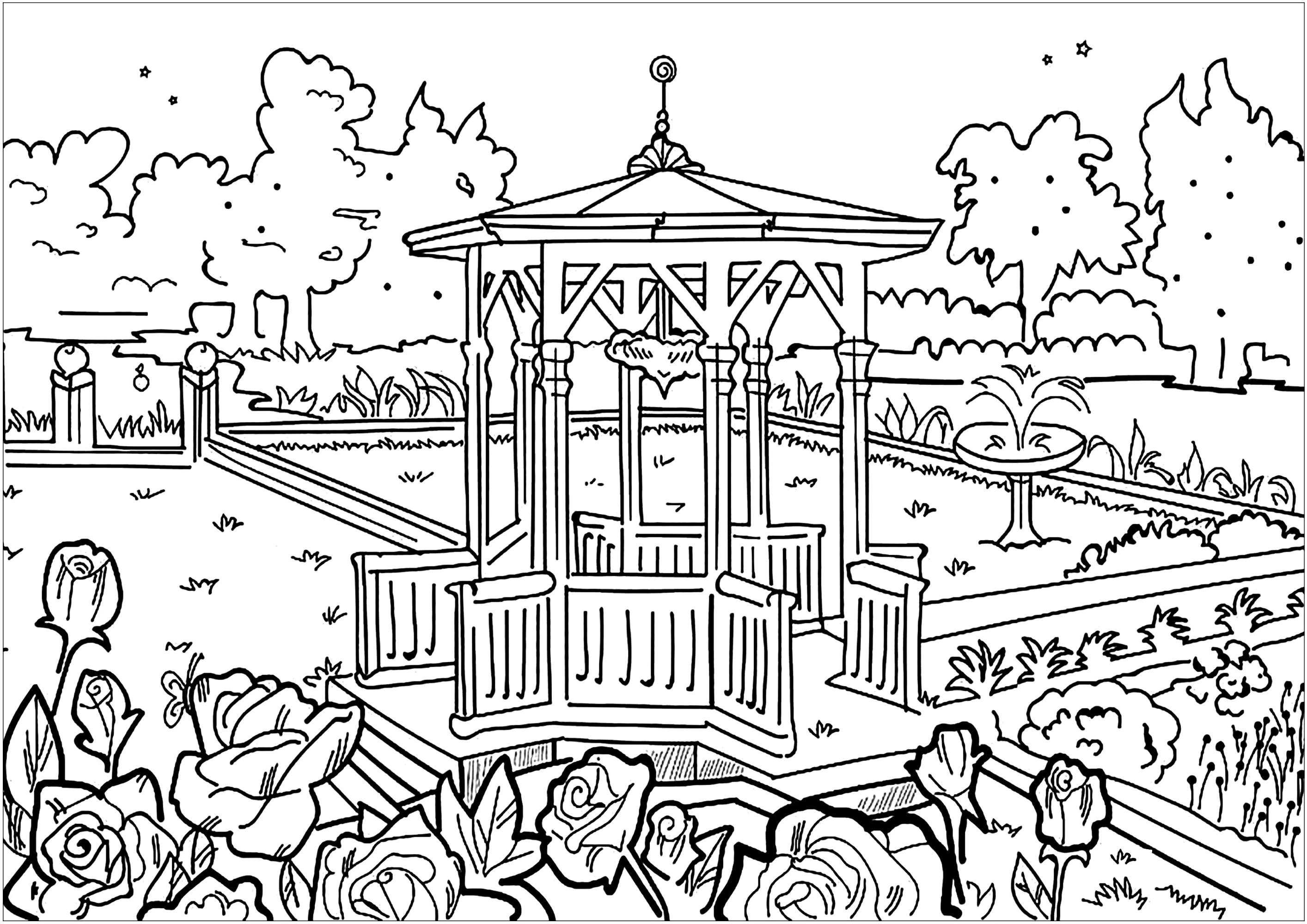 可爱公共花园中的小卖部 (适合成人打印的复杂着色 : Sophie Queuniez-Wojciechowski)