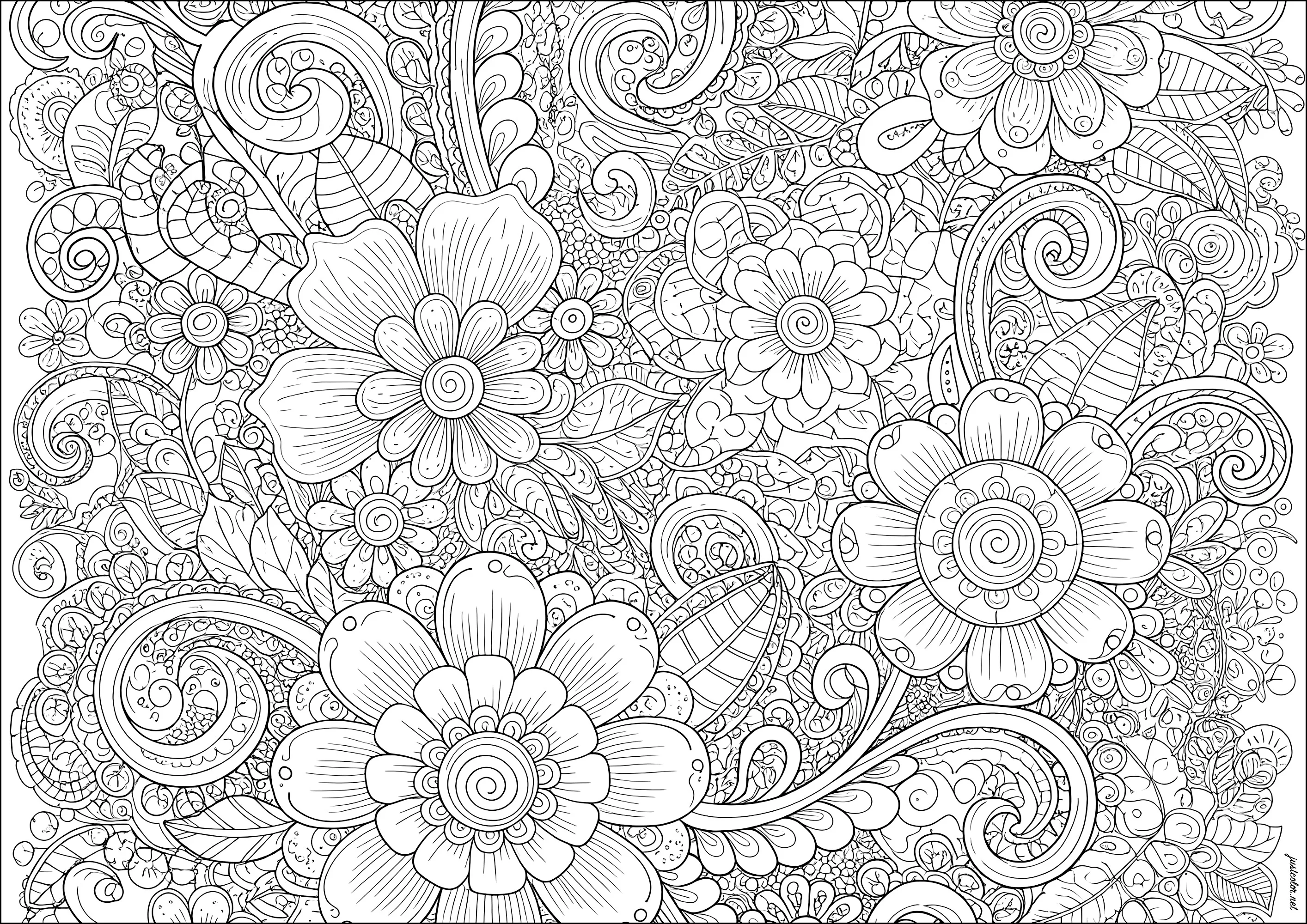 错综交织的花朵 (成人复杂着色 : Azyrielle)