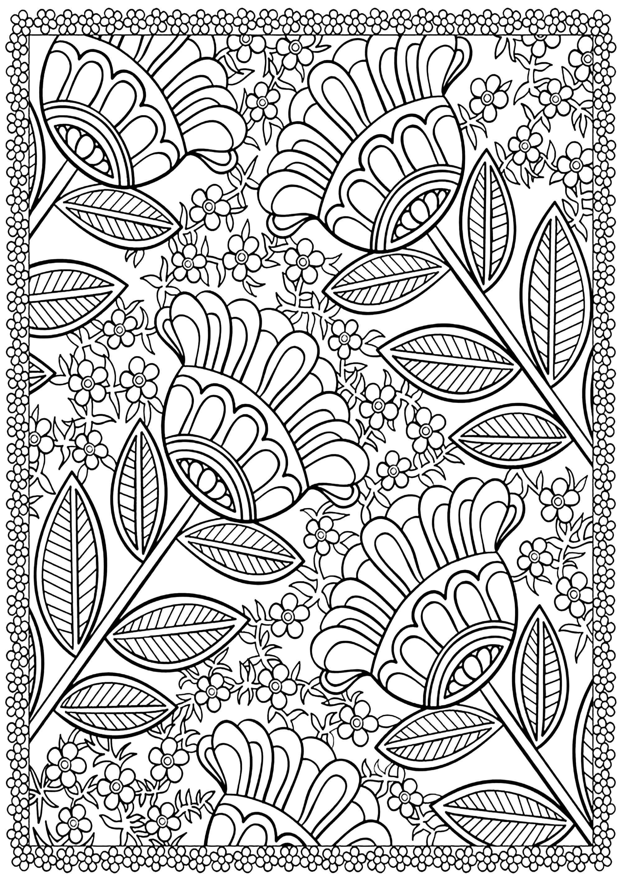 四朵大花 (成人复杂着色 : Azyrielle)