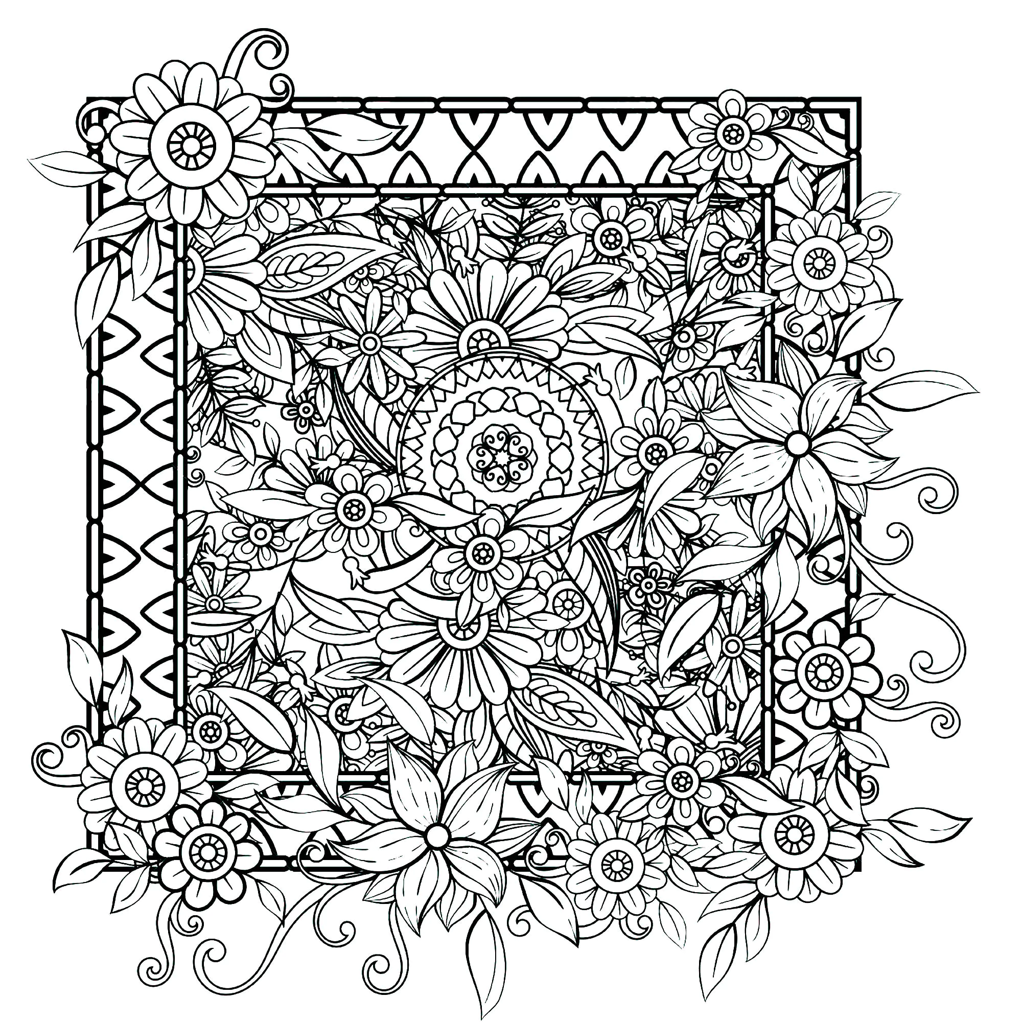 花朵从画框中绽放 (成人复杂着色 : Azyrielle)