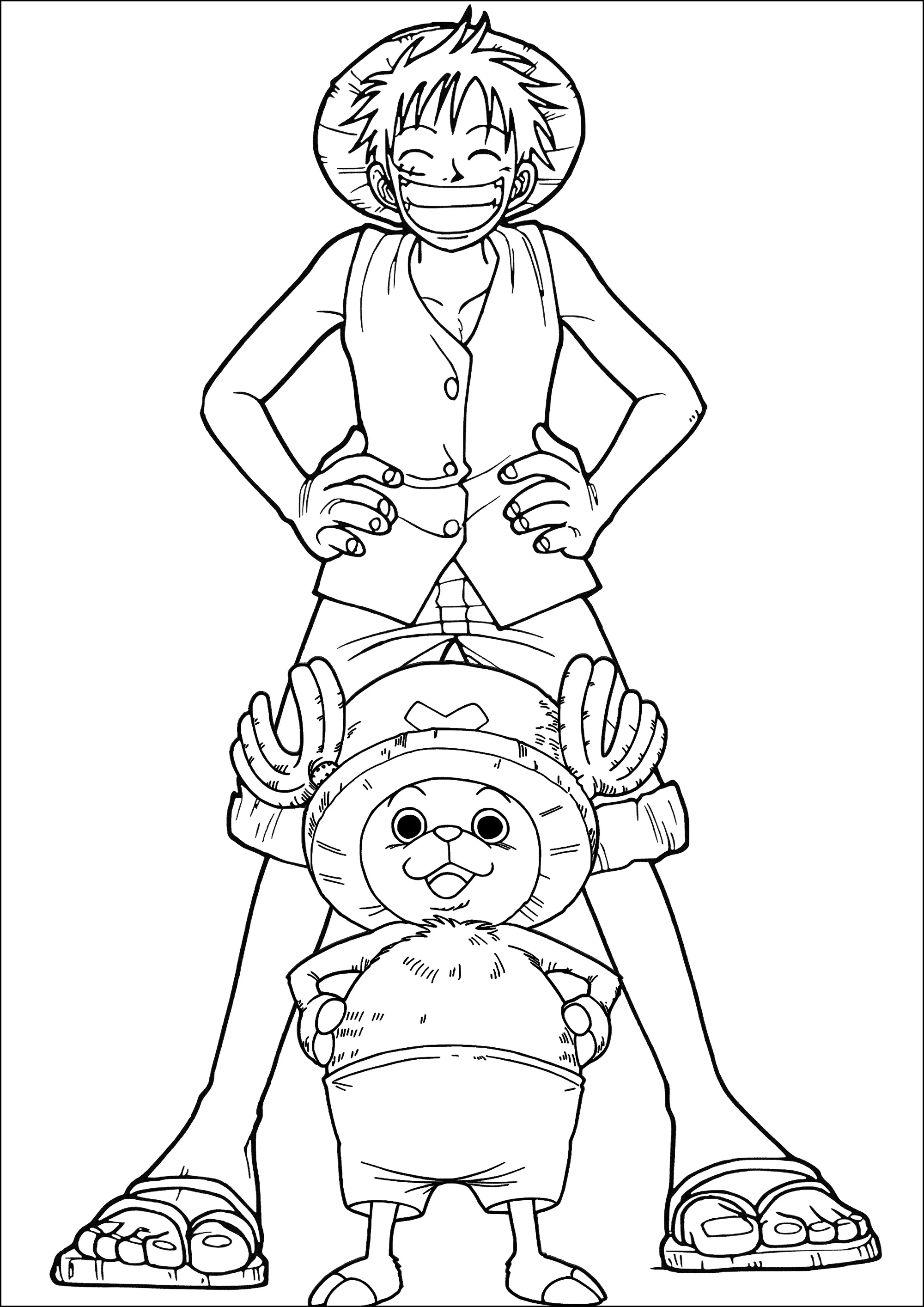 Tony Tony Chopper e Monkey D. Luffy juntos (Página de One Piece para colorir para crianças)