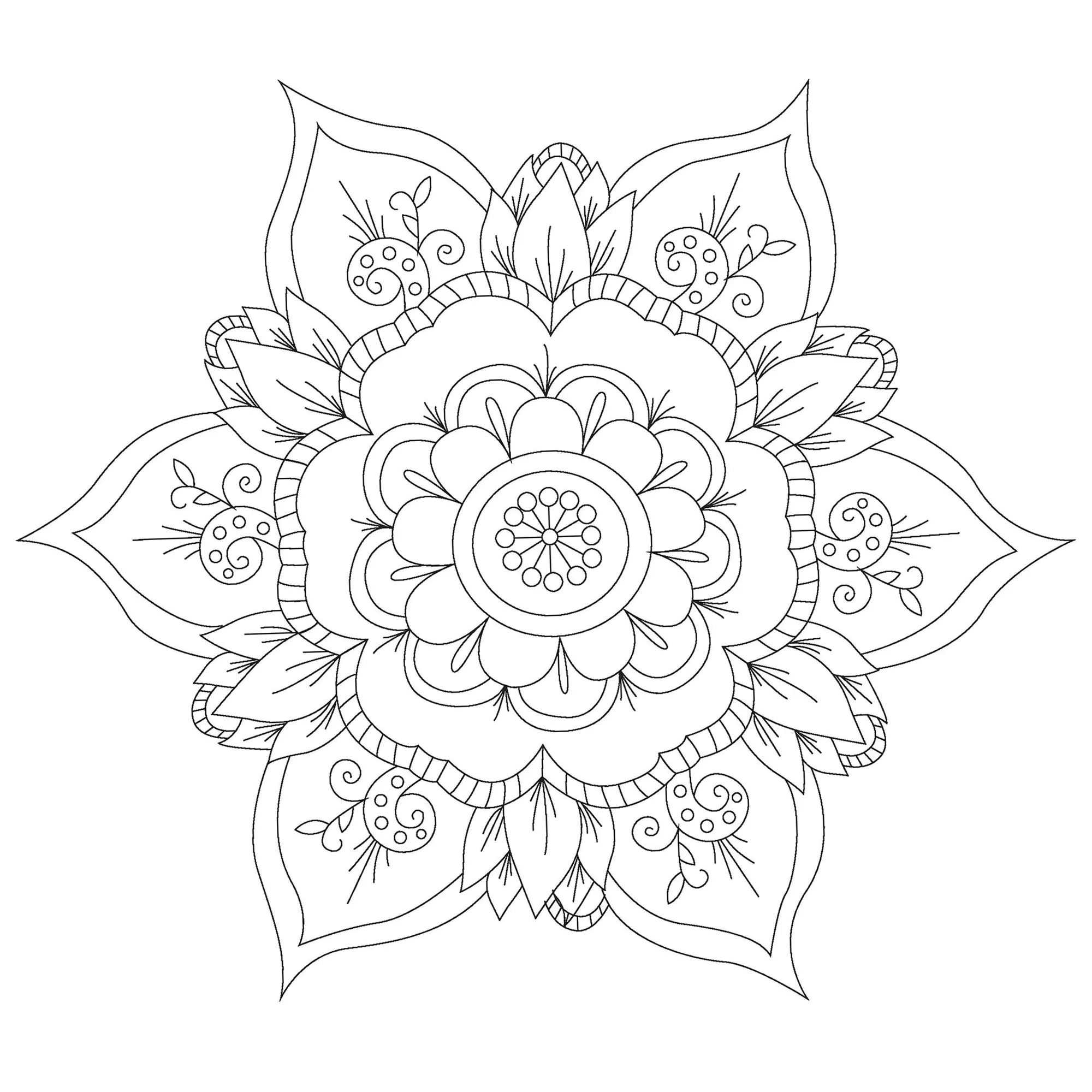 Bonita Mandala em forma de flores (Página para colorir para crianças)