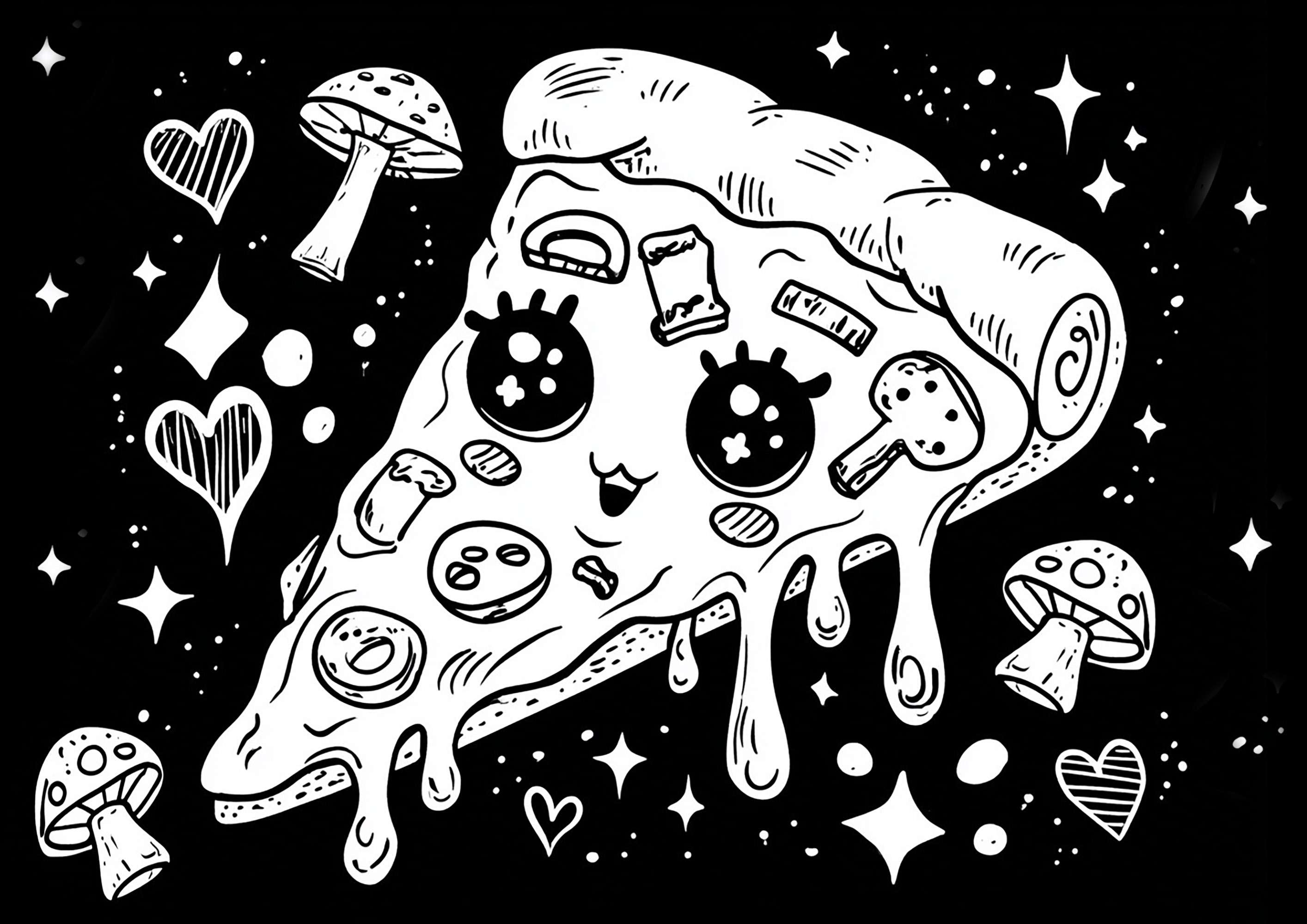 Parte de pizza do espaço (Página de Kawaii para colorir para crianças)