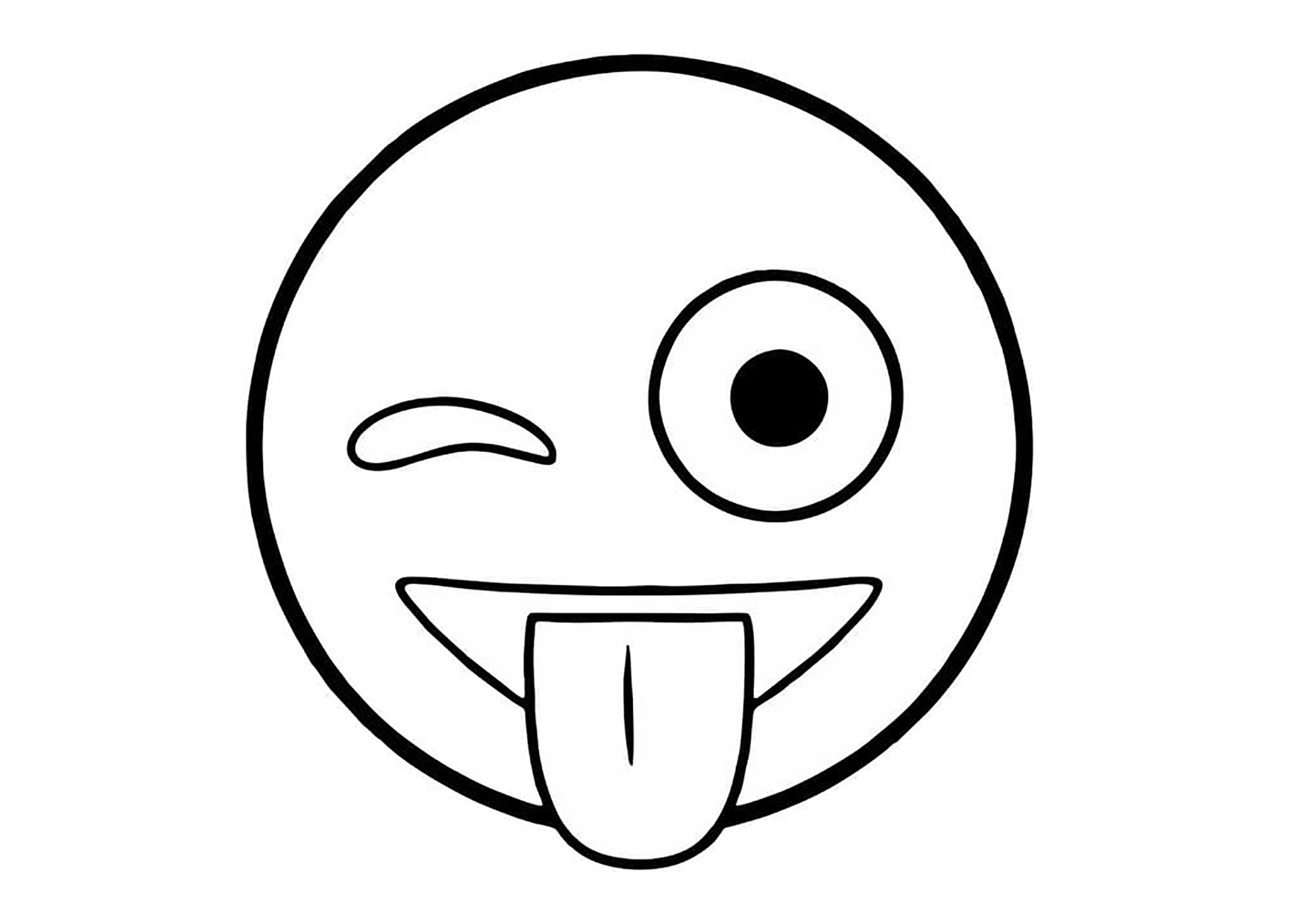 Smiley a pôr a língua de fora (Página de Emoji para colorir para crianças)