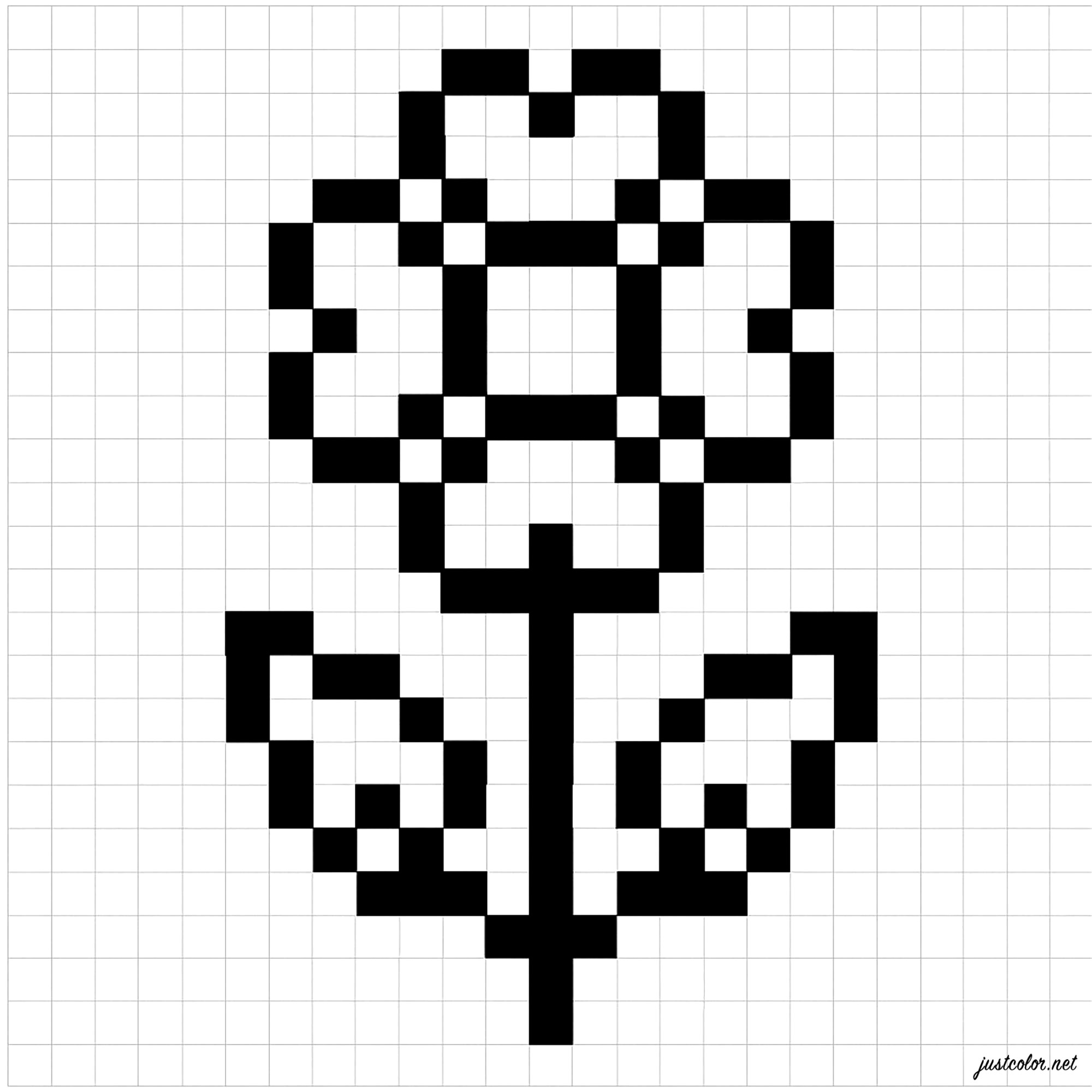 Bela flor com folhas delicadas (Página de Pixel Art para colorir para crianças)