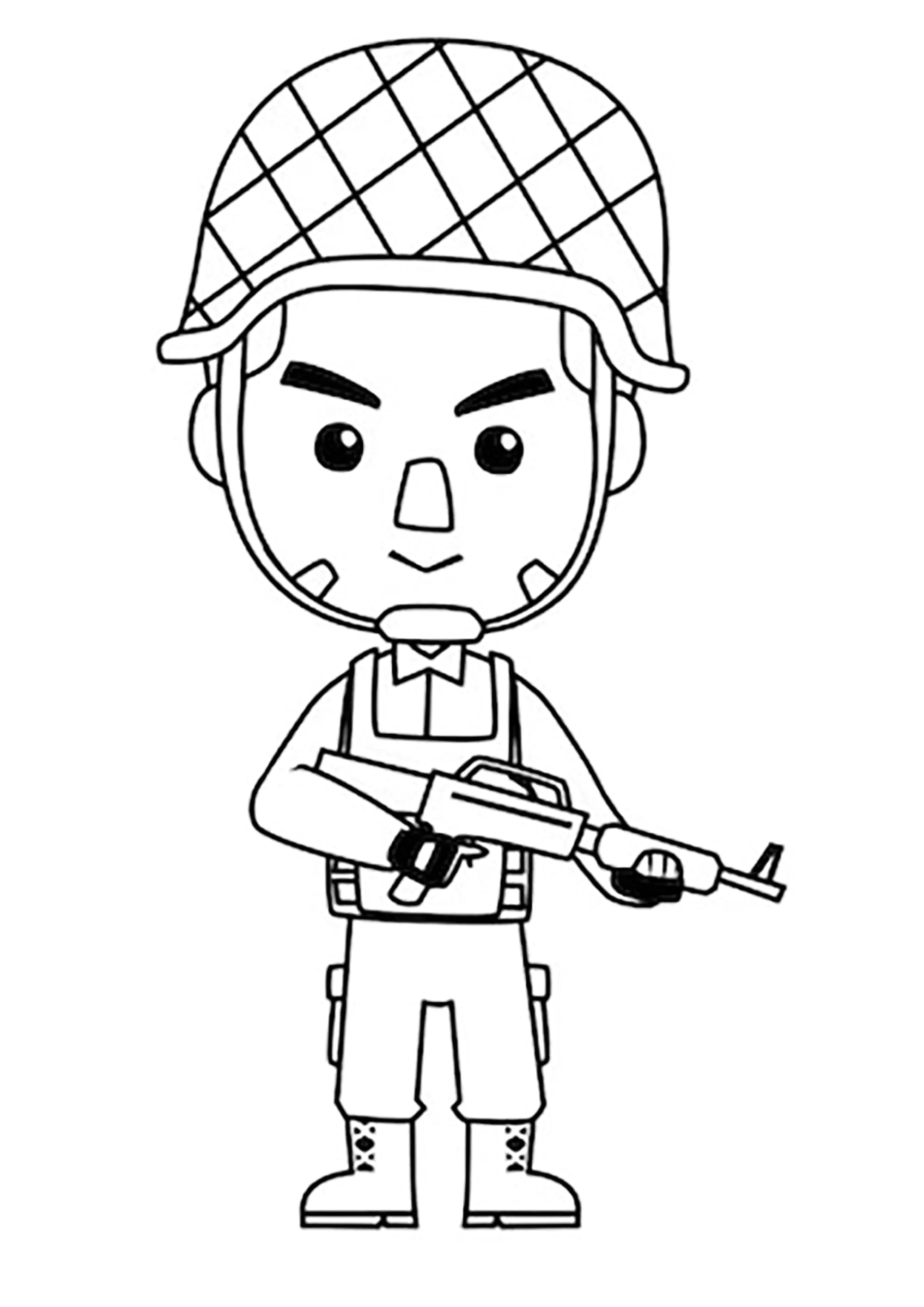 Desenho engraçado de um soldado com a sua espingarda (Página para colorir para crianças)