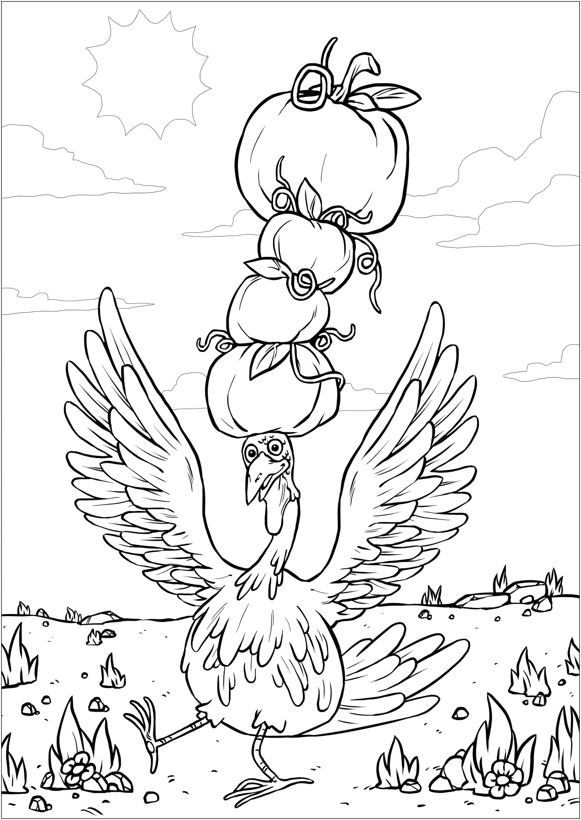 Peru e abóboras (Página de Ação de graças (Thanksgiving) para colorir para crianças)