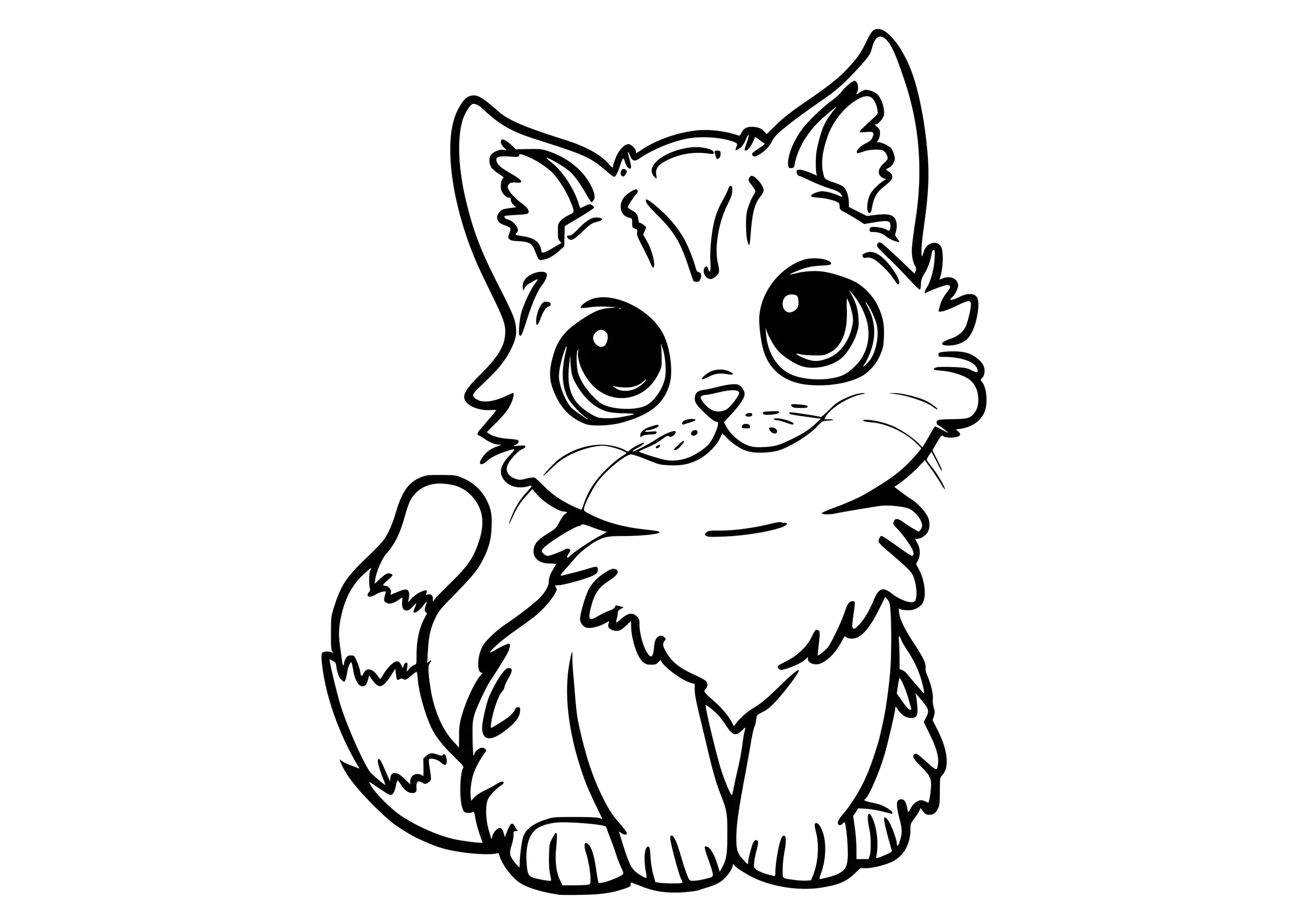 Gato bonito estilo kawaii (Página para colorir para crianças)