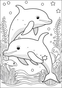 Aqui estão imagens de Golfinhos para imprimir e colorir.
