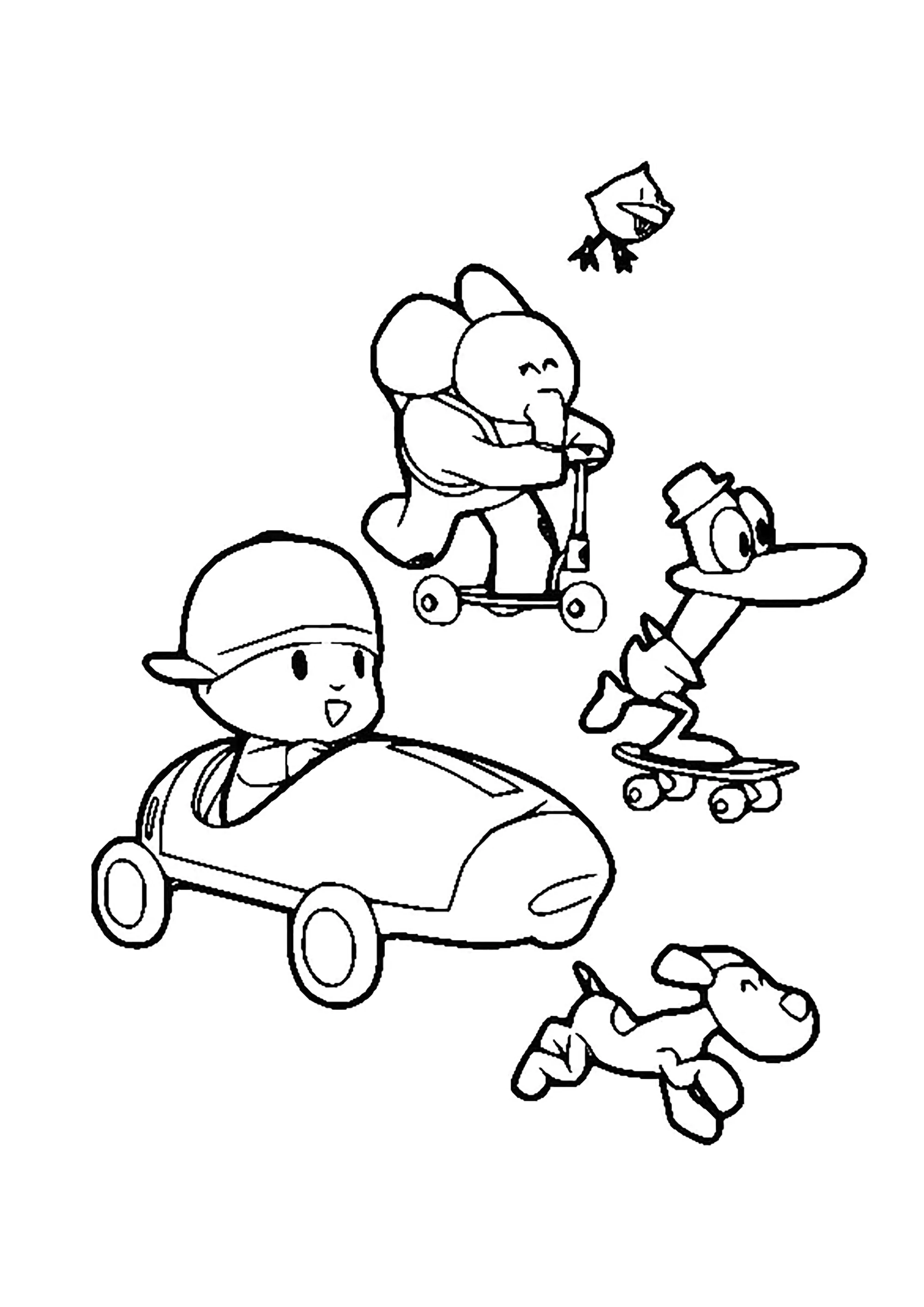 Tempo para novas aventuras (Página de Pocoyo para colorir para crianças)
